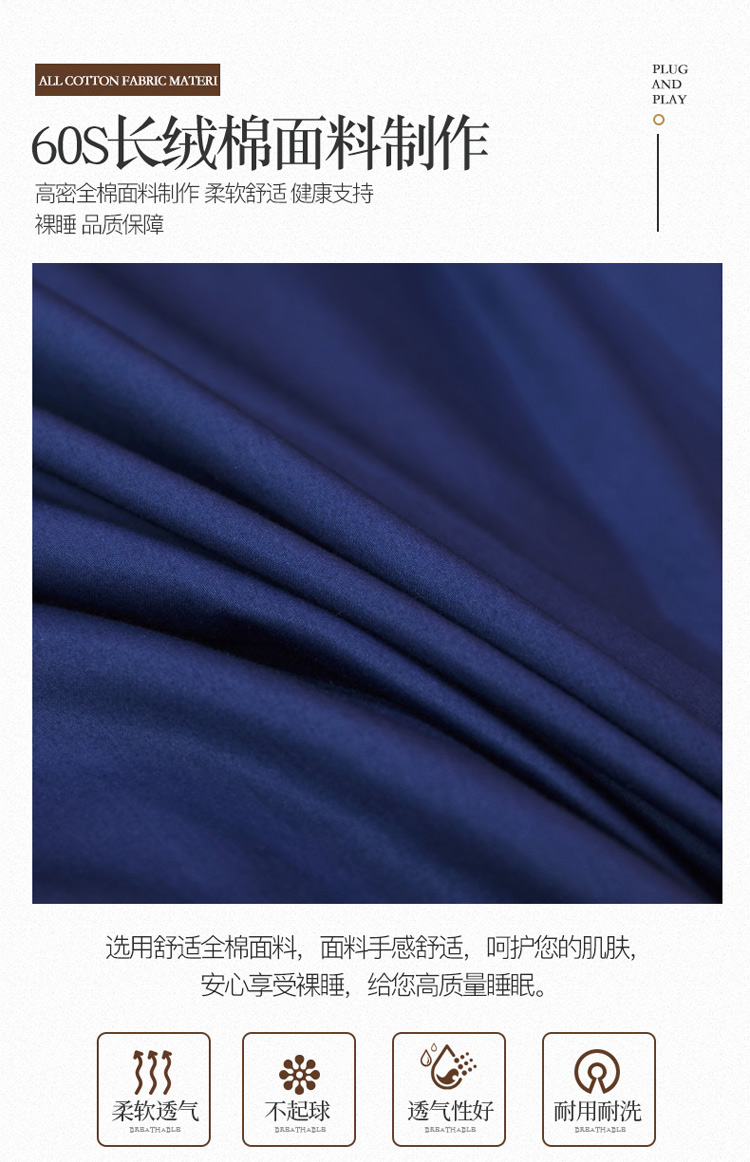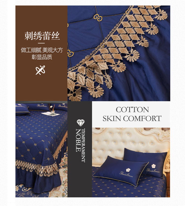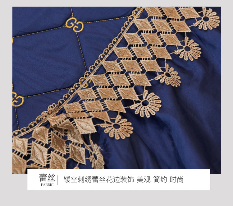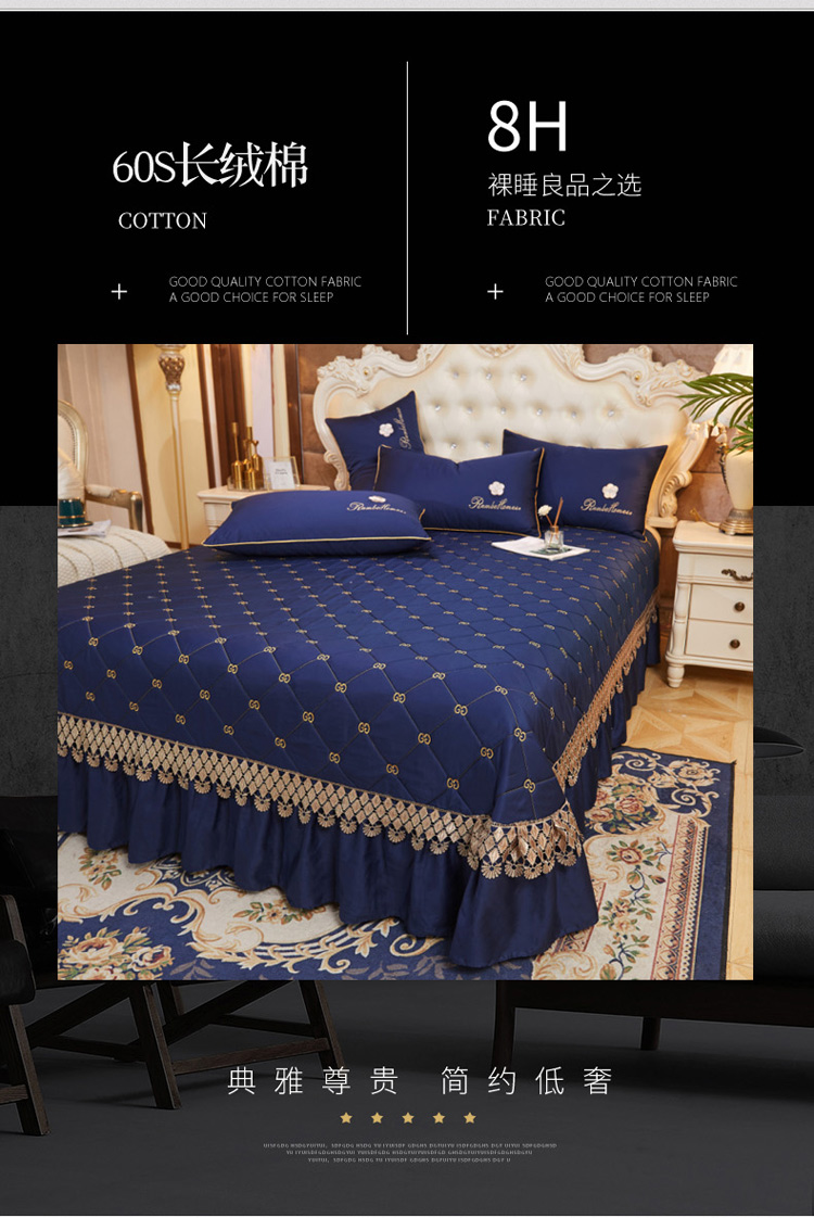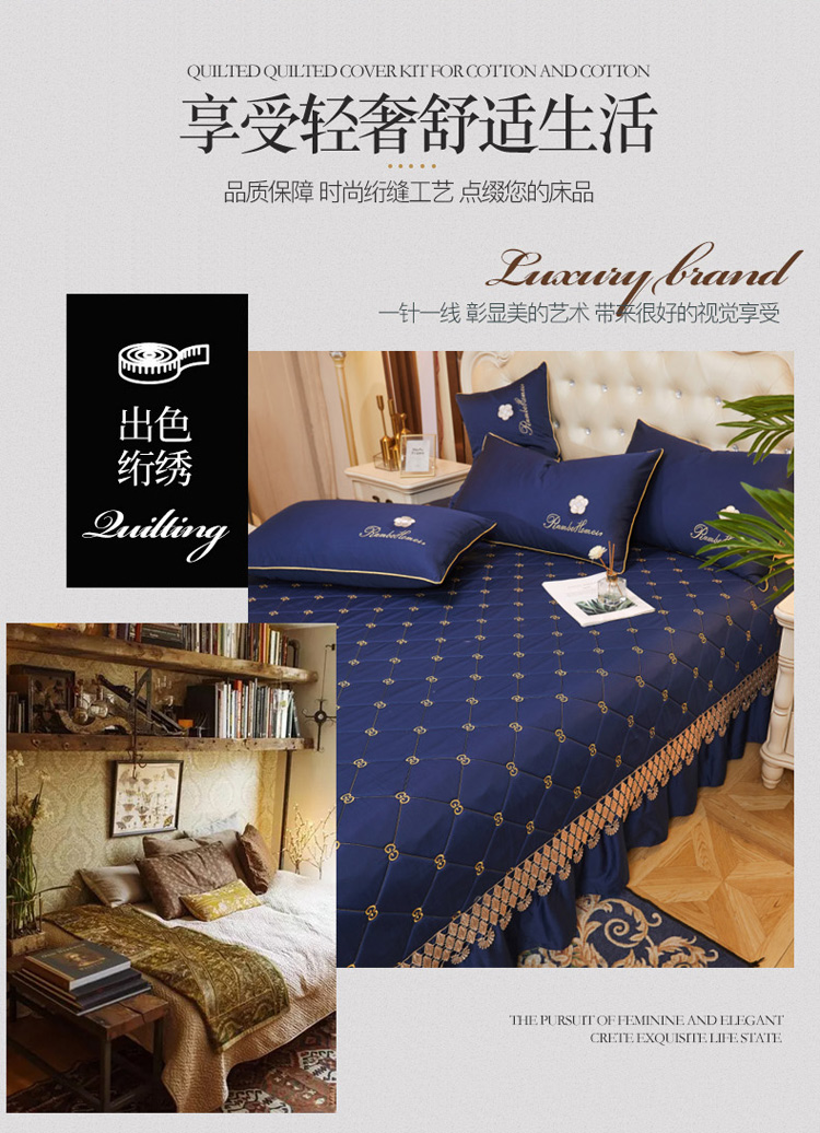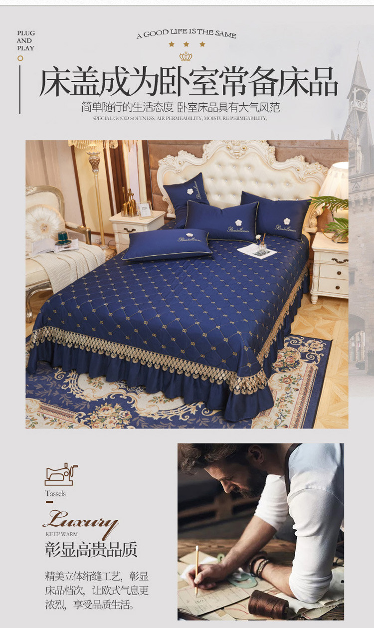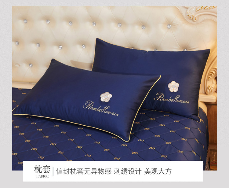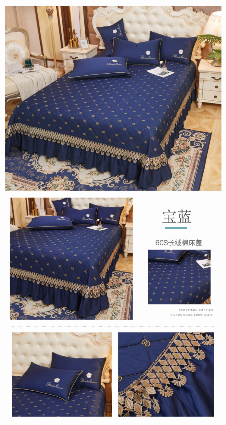 商品名称:菊上 2021新款60支长绒棉山茶花系列加棉床盖 宝蓝