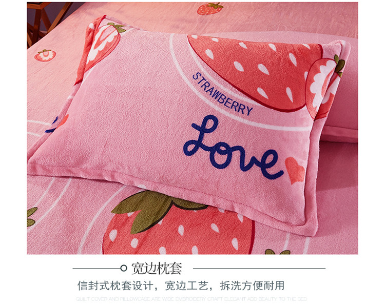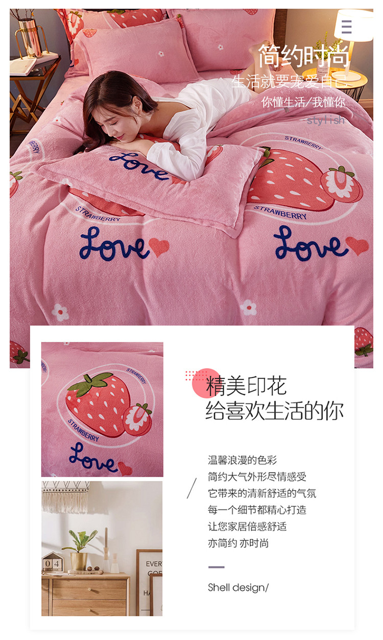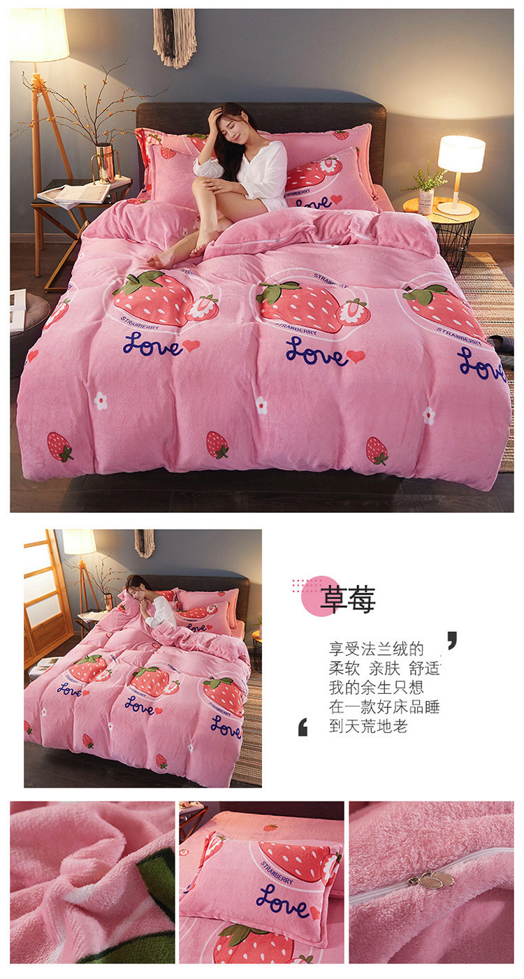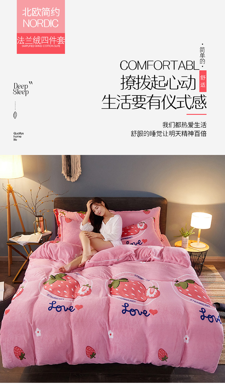 商品名称:迷仙巢 2020新款160克法莱绒印花四件套 草莓