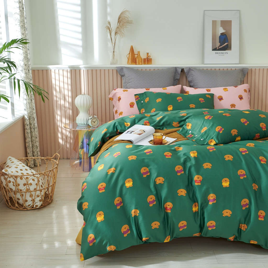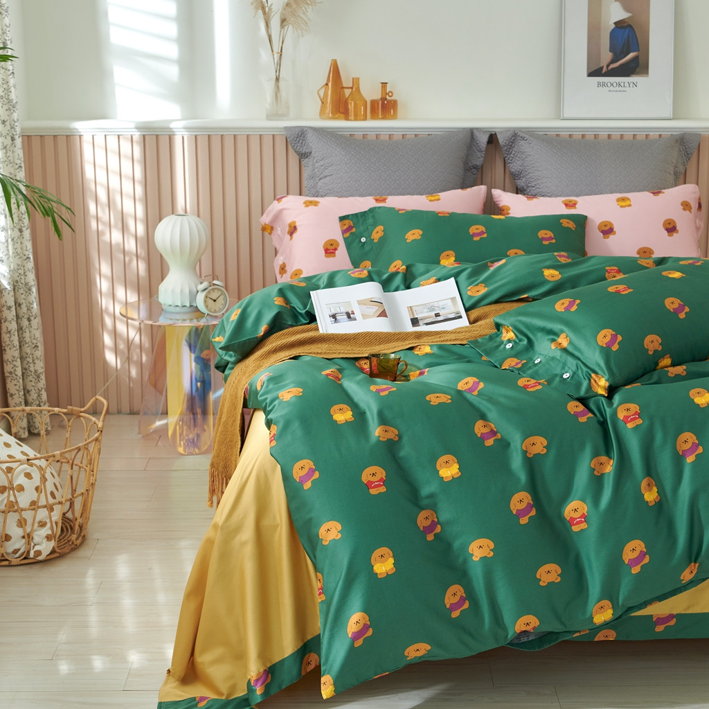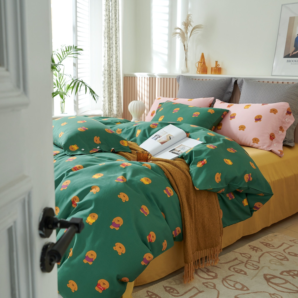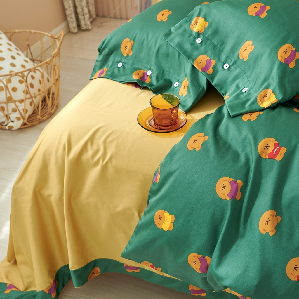 商品名称:优然居2020新款60S长绒棉活性印花四件套 饼干熊绿