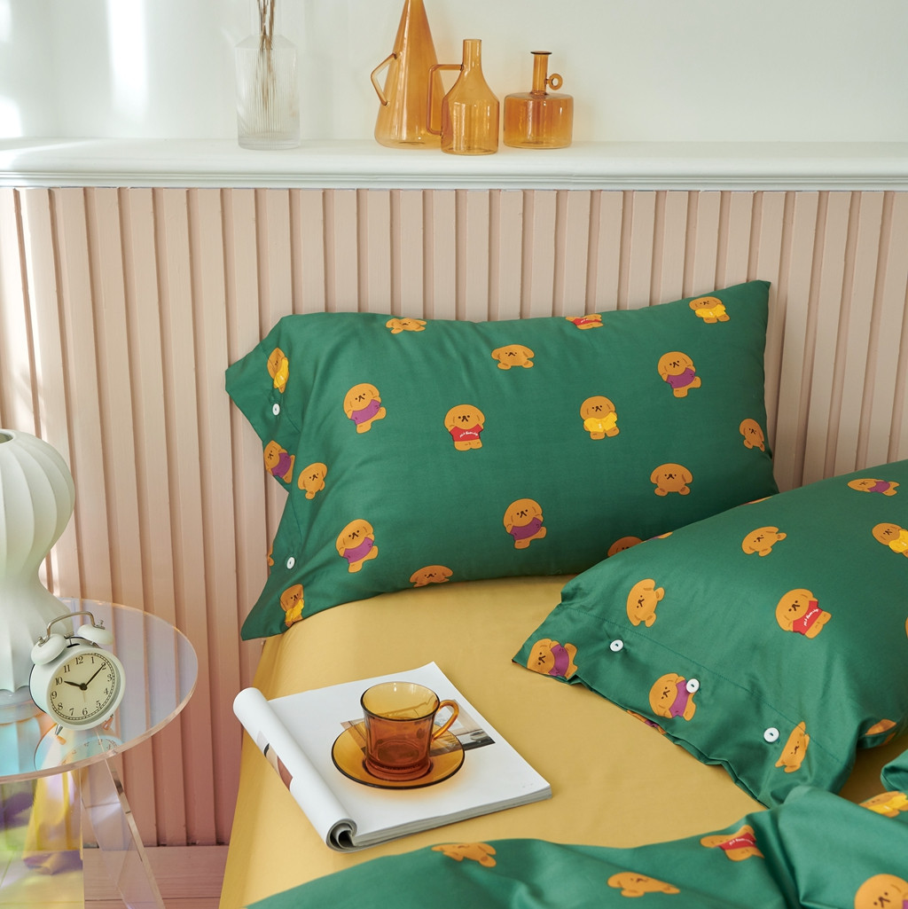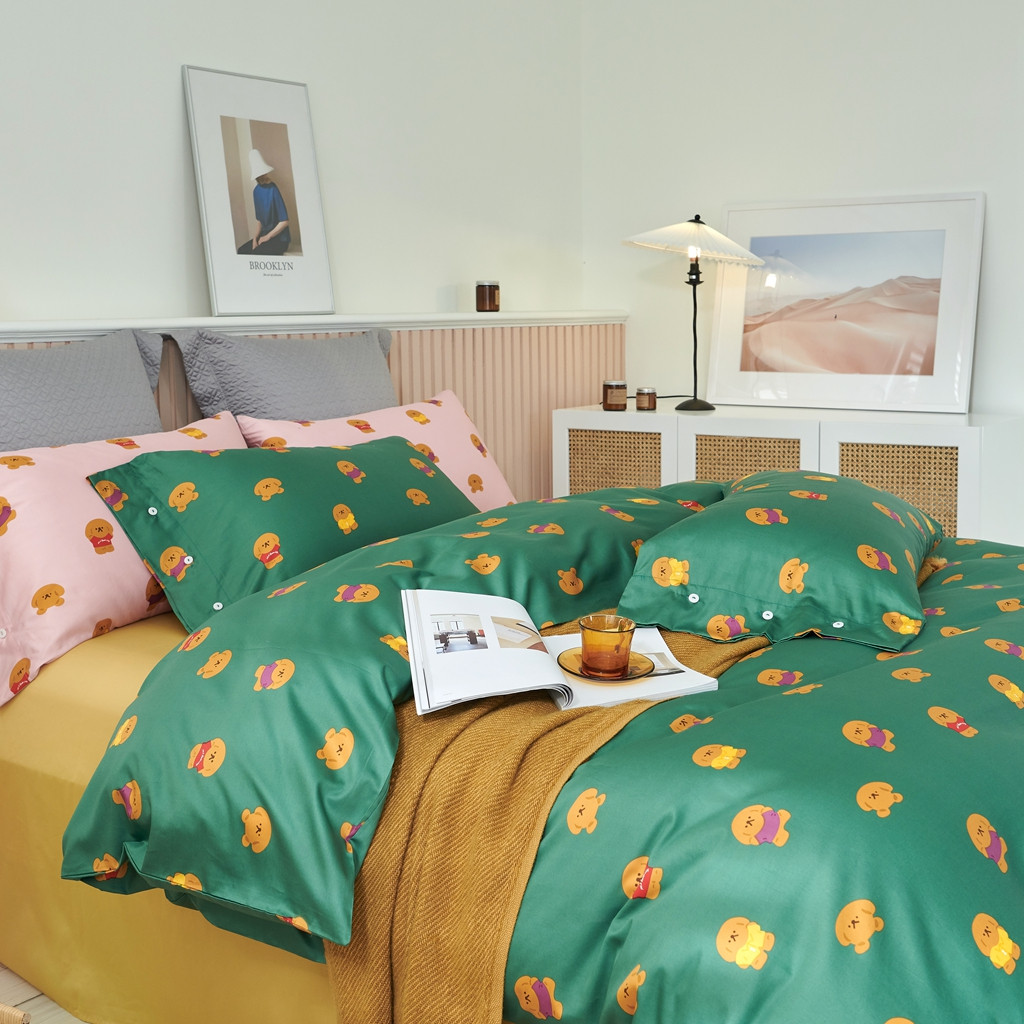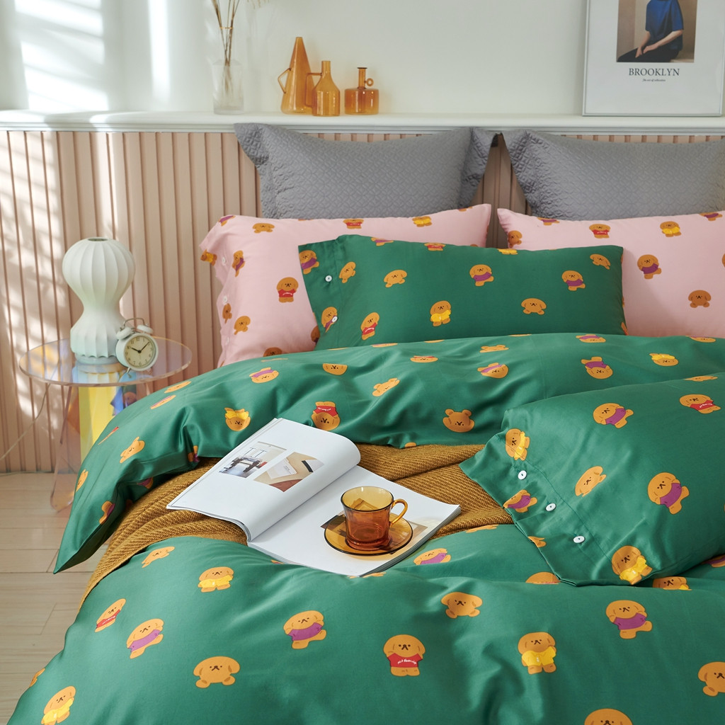 优然居2020新款60S长绒棉活性印花四件套 饼干熊绿