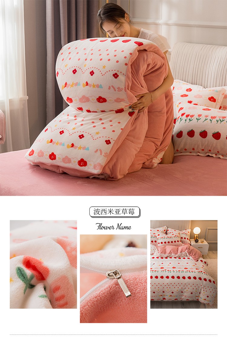 商品名称:寐居 2020新款印花牛奶绒单被套 波西米亚草莓