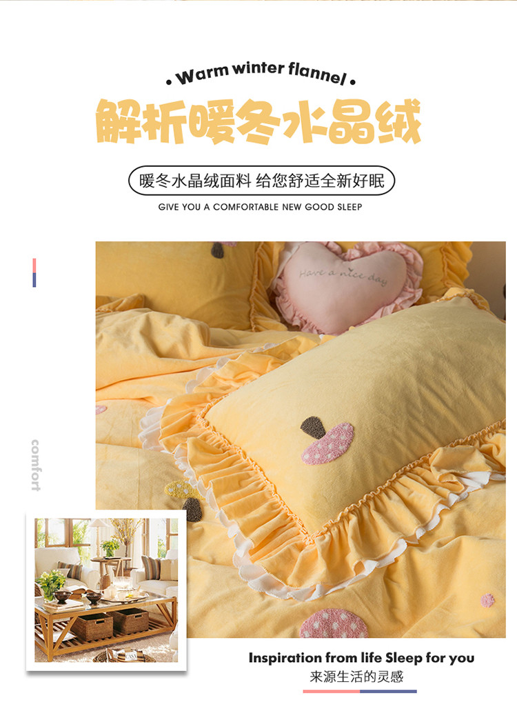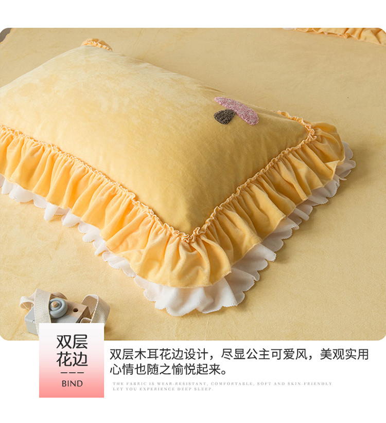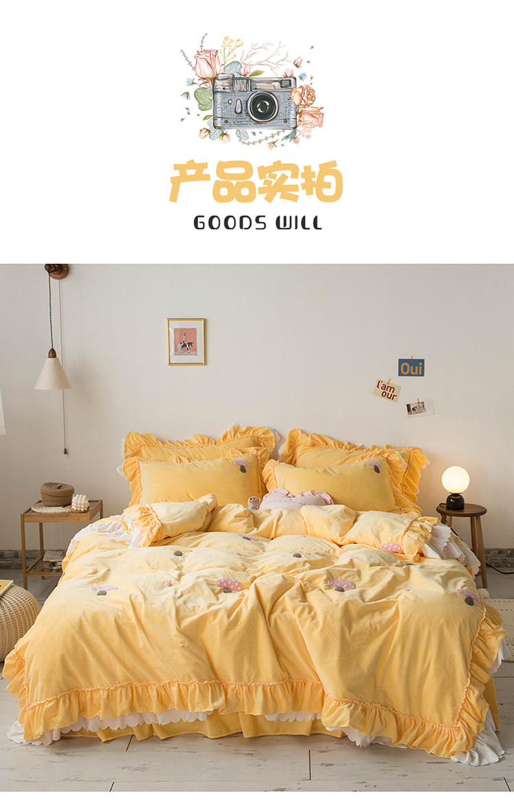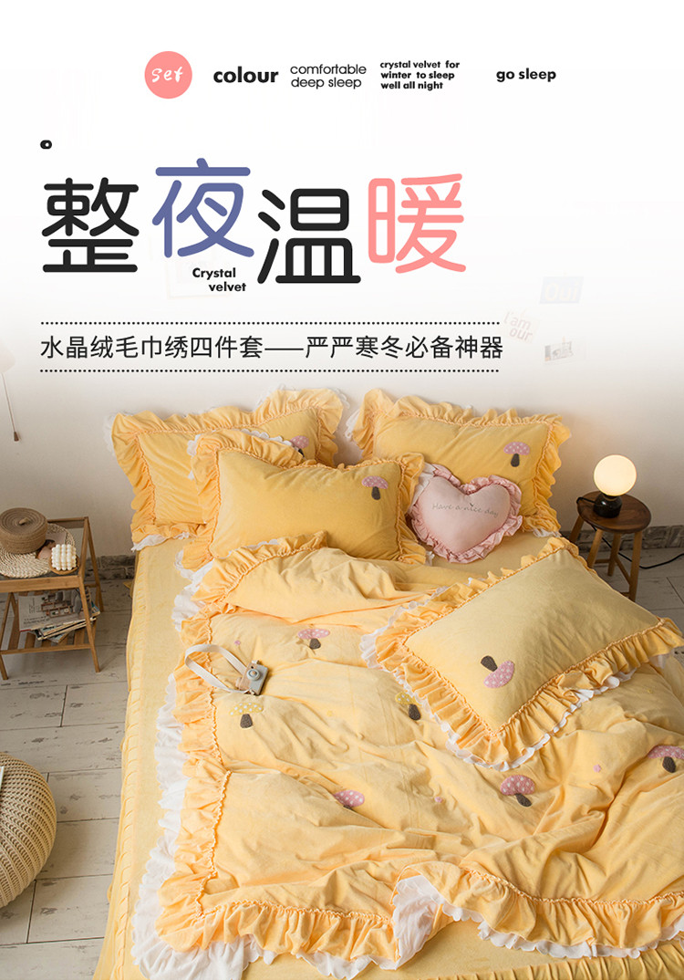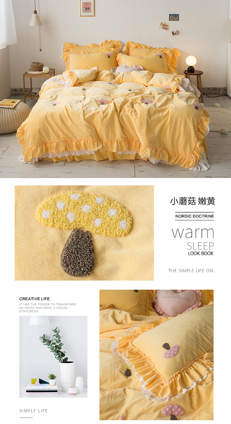 淑女公社 2020新款秋冬毛巾绣13色四件套 小蘑菇嫩黄