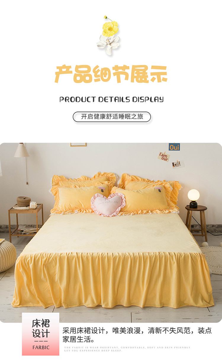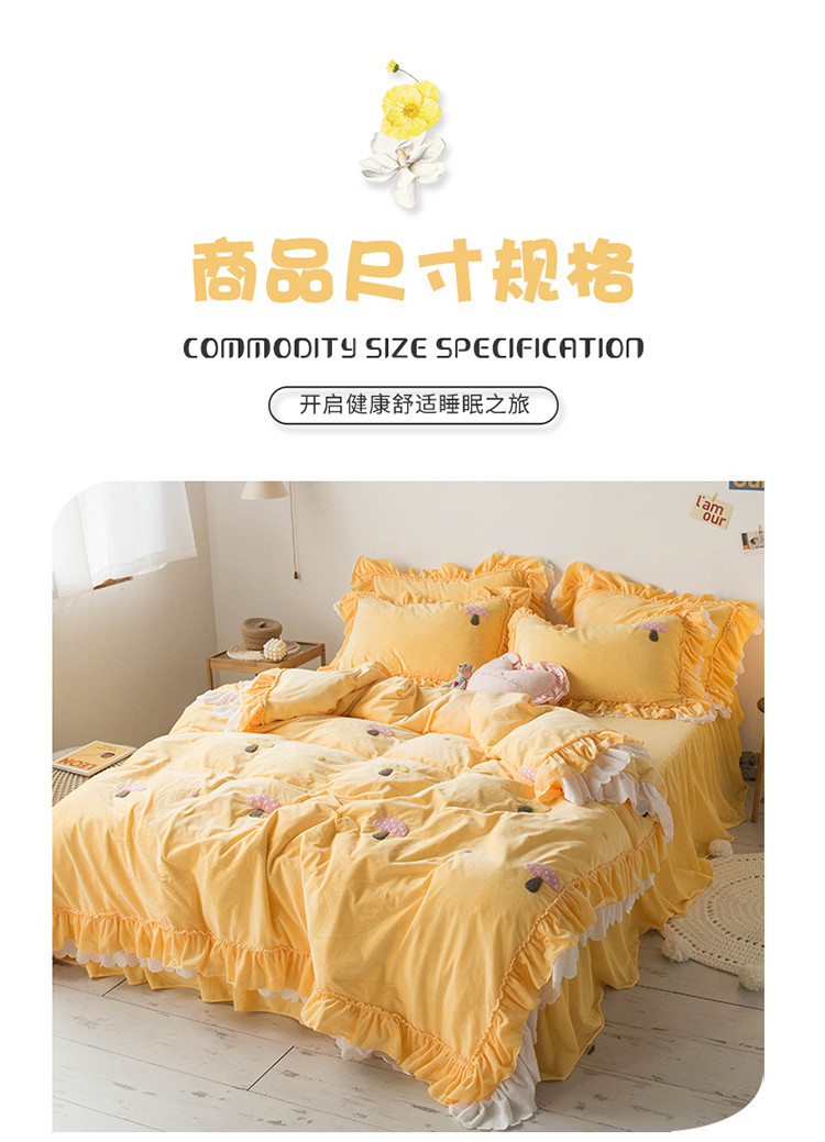 (总)淑女公社 2021新款全棉韩版花边床裙款四件套,波点-橙,波点-粉,波点-黄