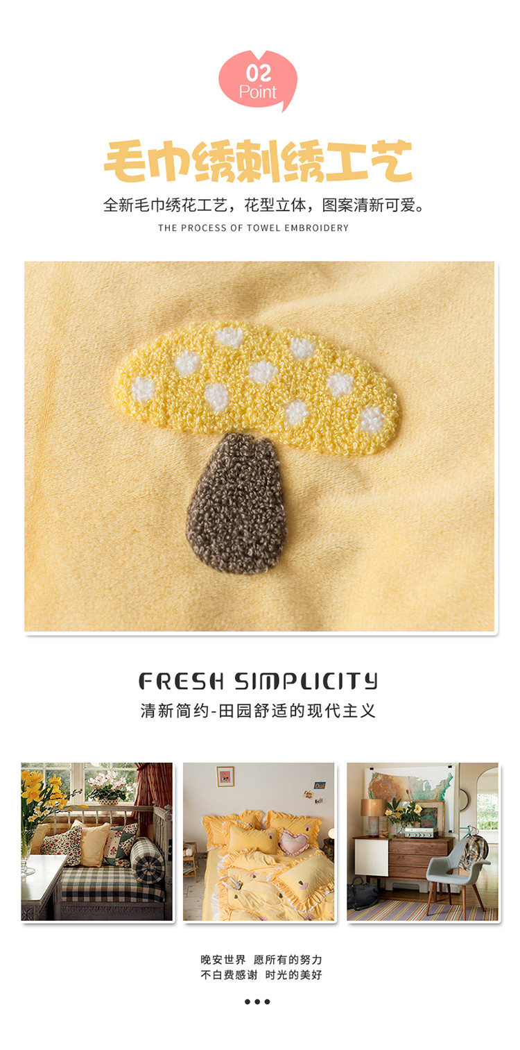 商品名称:淑女公社 2020新款秋冬毛巾绣13色四件套 小蘑菇嫩黄