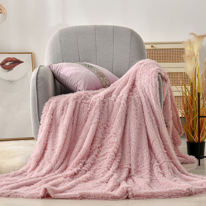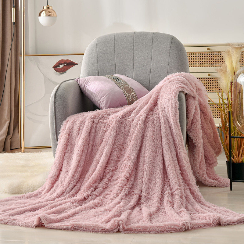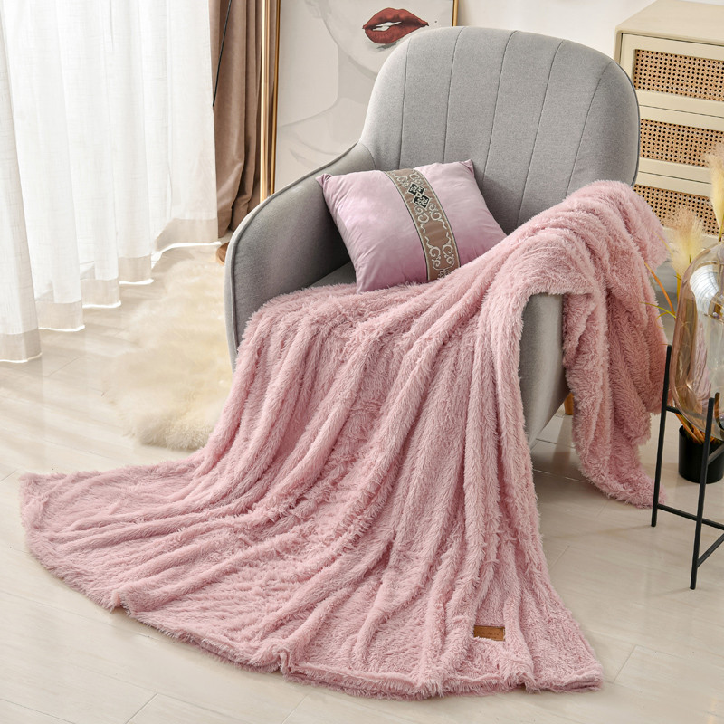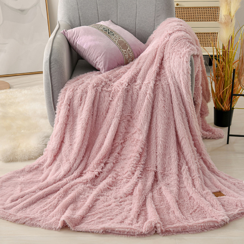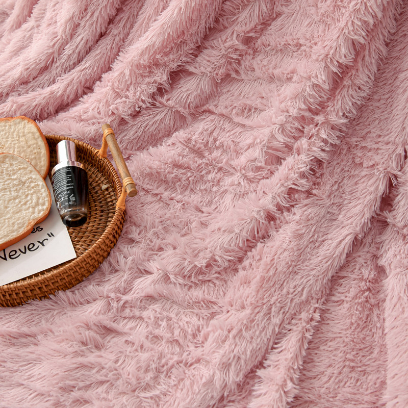 卡奥家纺 2021多功能双层超柔长毛毯空调毯毛绒被套 粉色
