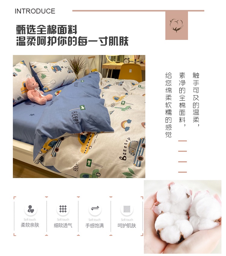商品名称:吉象 2021全棉四件套纯棉四件套直播13070 汽车嘟嘟