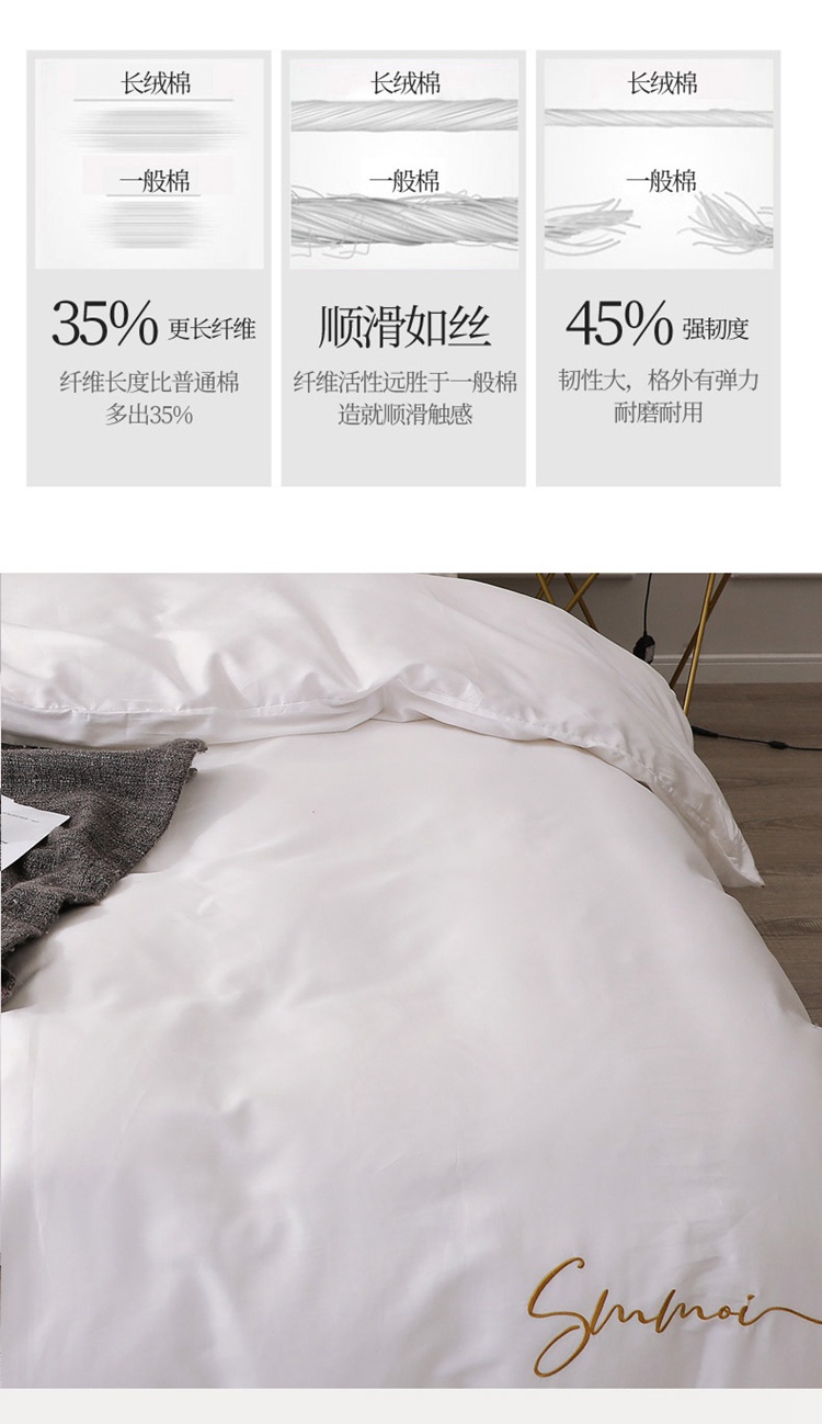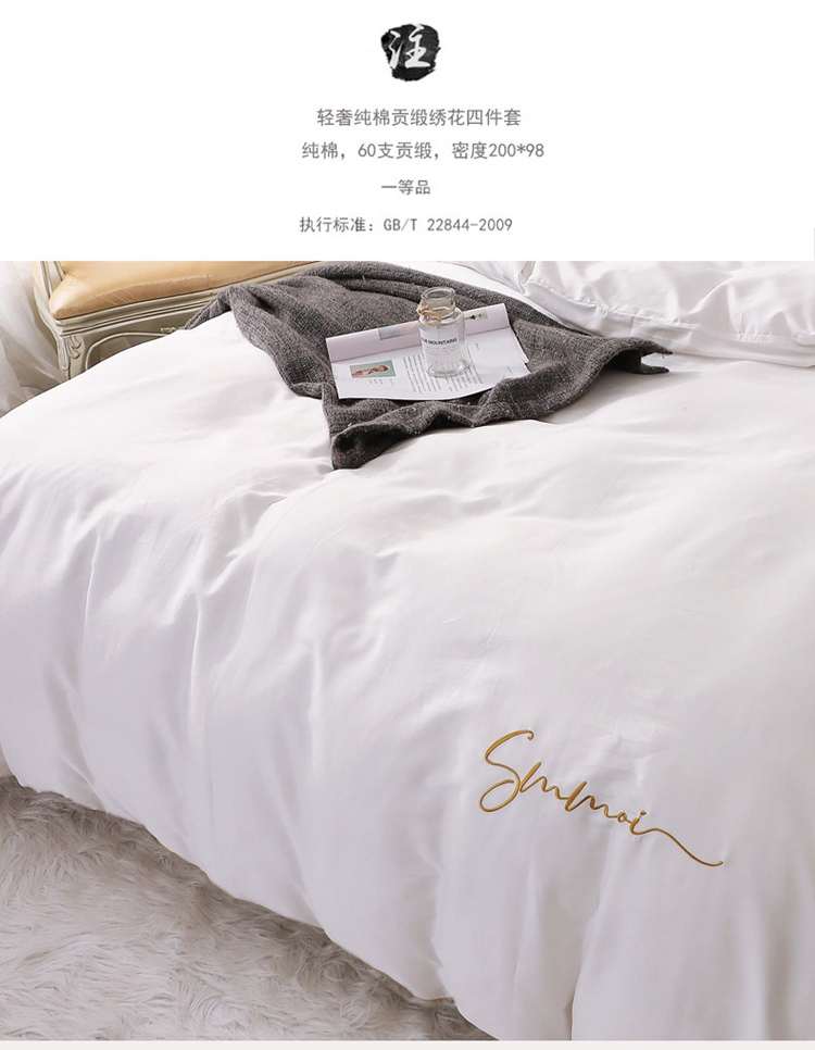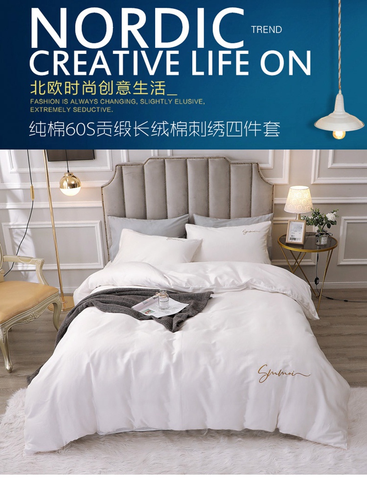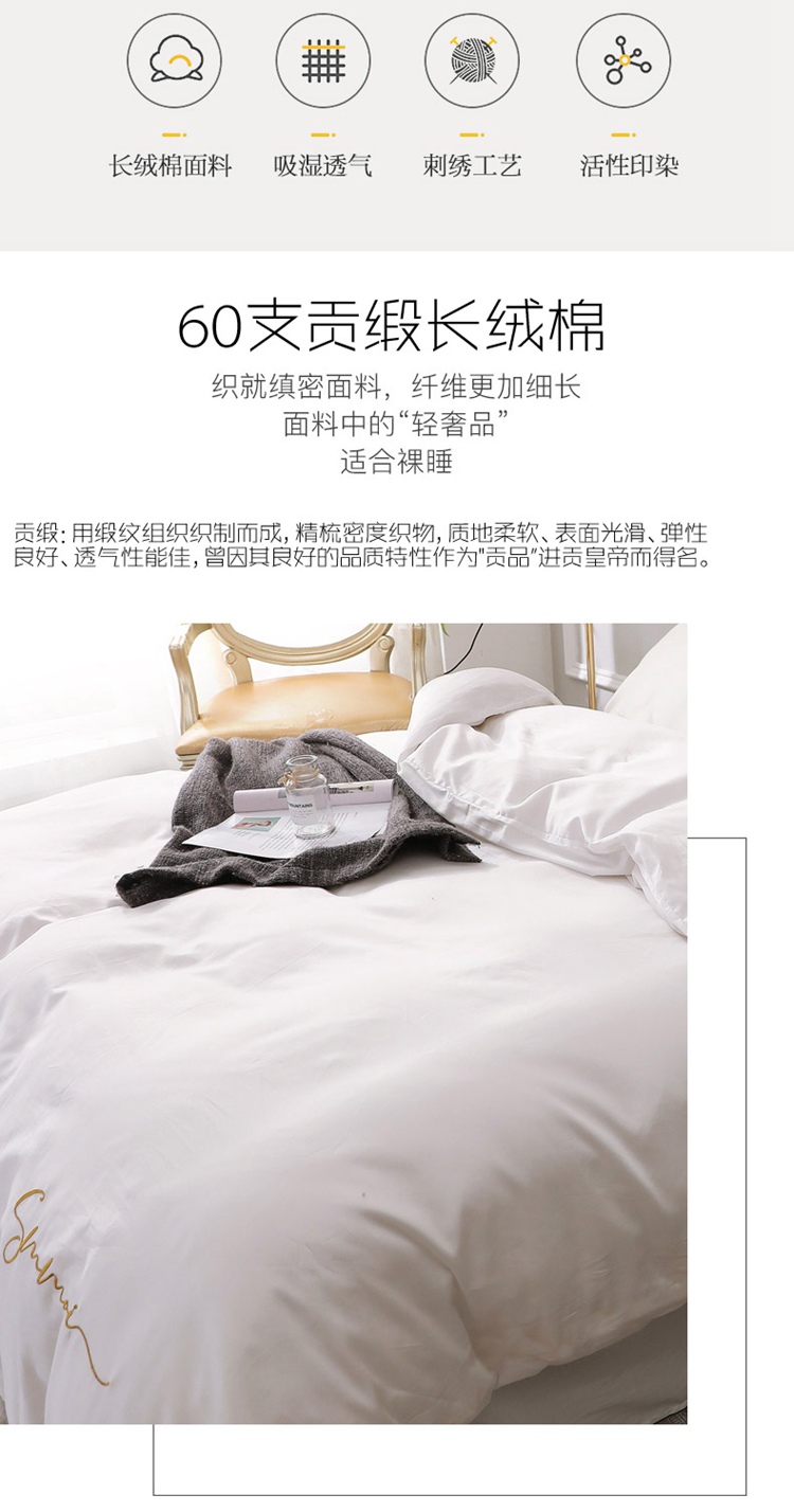 商品名称:2021新款纯色拼色纯棉全棉60S贡缎长绒棉绣花四件套 本白