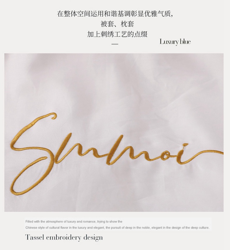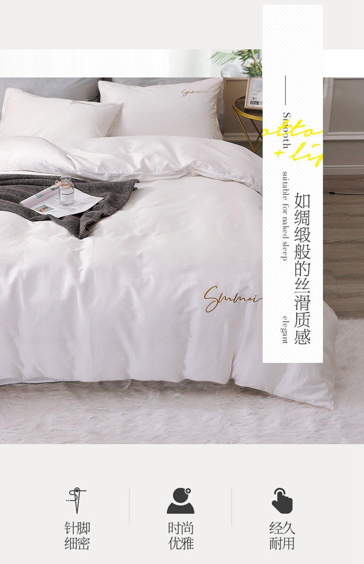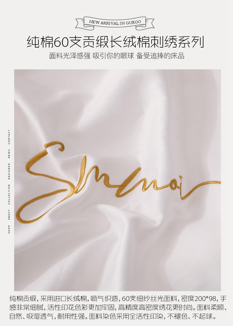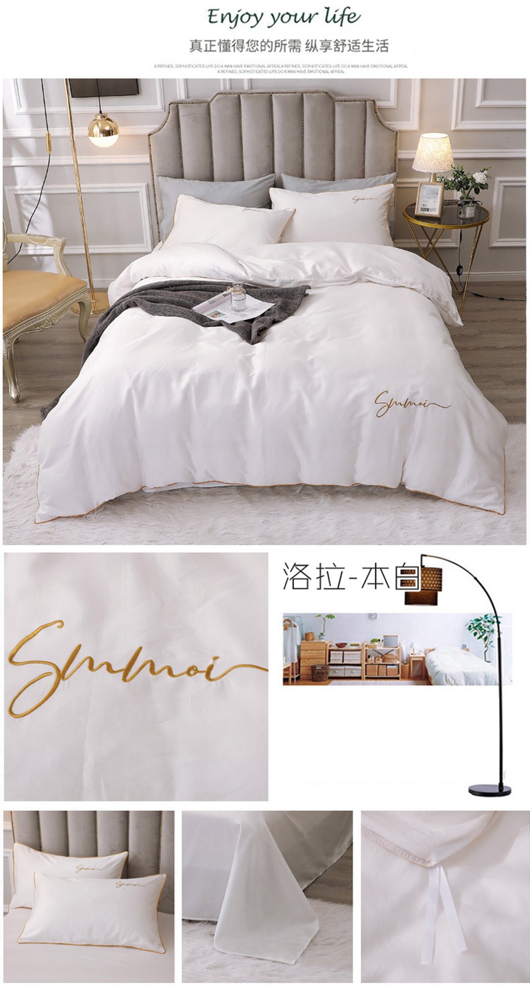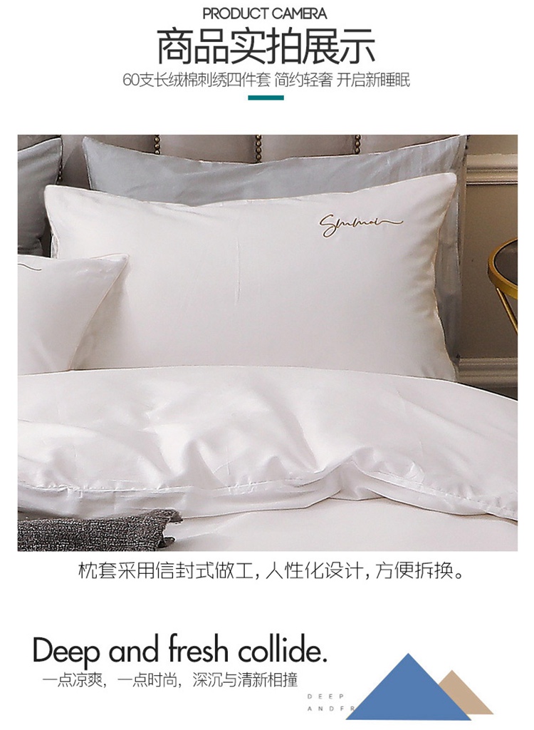 商品名称:2021新款纯色拼色纯棉全棉60S贡缎长绒棉绣花四件套 本白