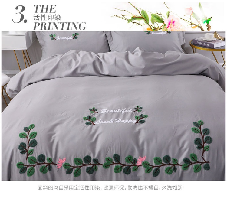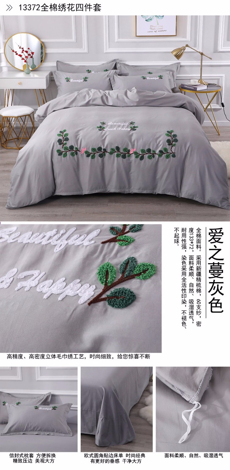 商品名称:2021新款全棉13372毛巾绣纯棉刺绣花四件套 爱之蔓灰色