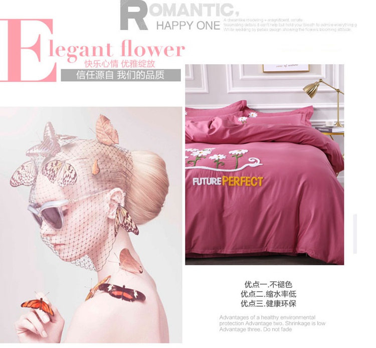 商品名称:2021新款全棉13372毛巾绣纯棉刺绣花四件套夏花绽放豆沙