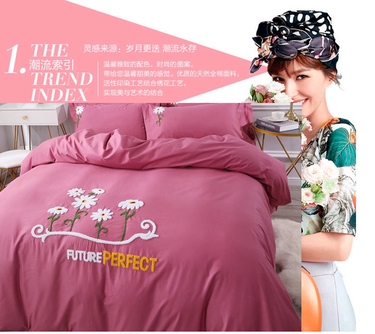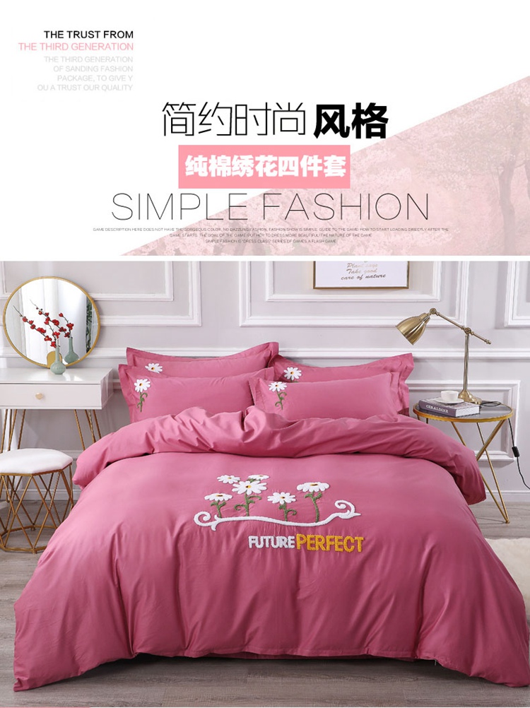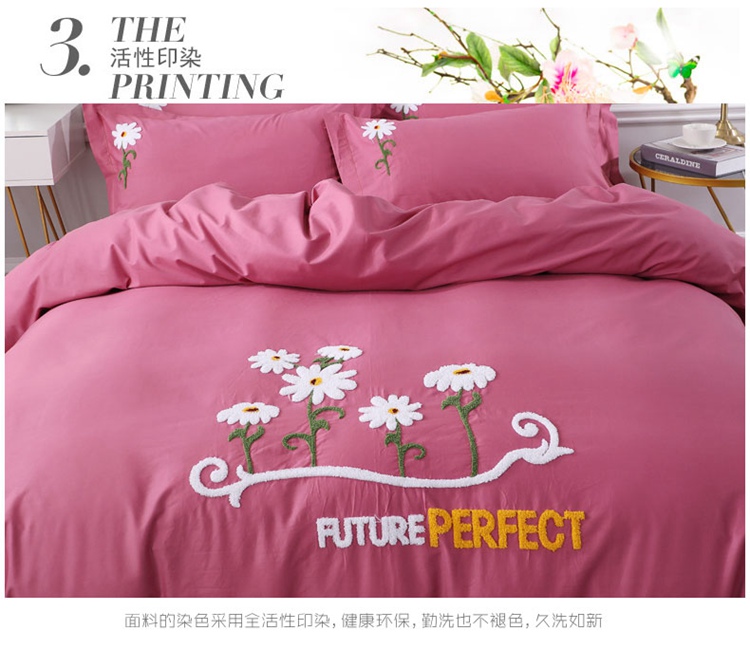 2021新款全棉13372毛巾绣纯棉刺绣花四件套夏花绽放豆沙
