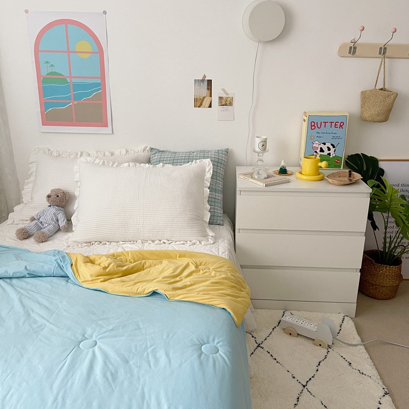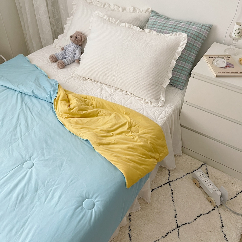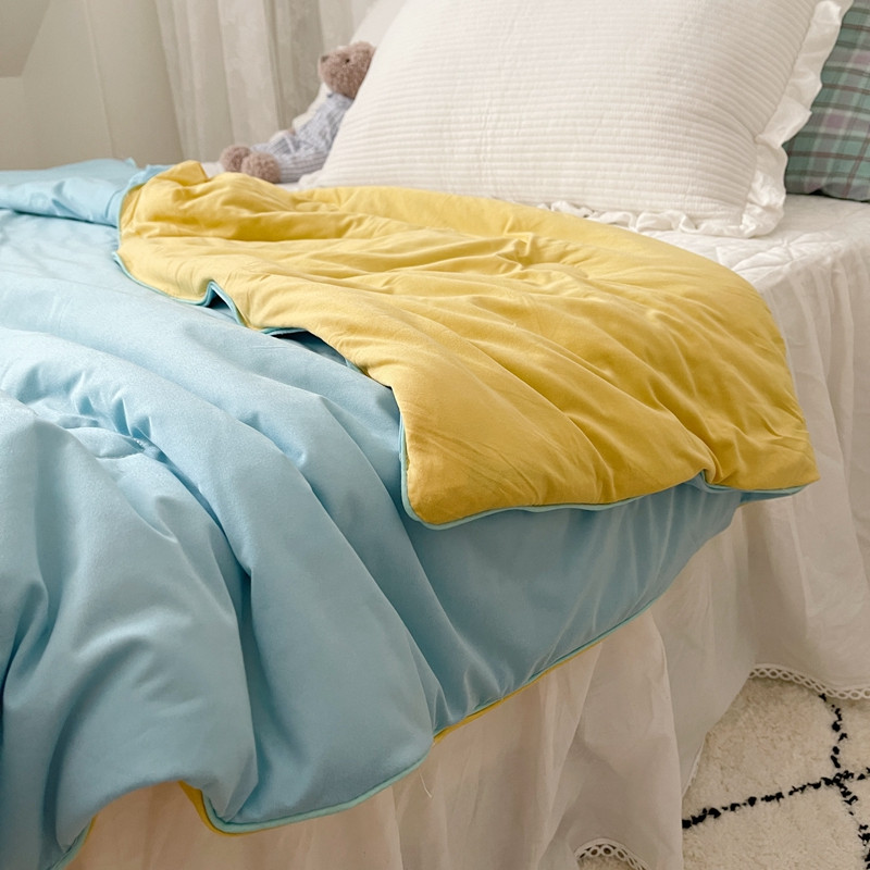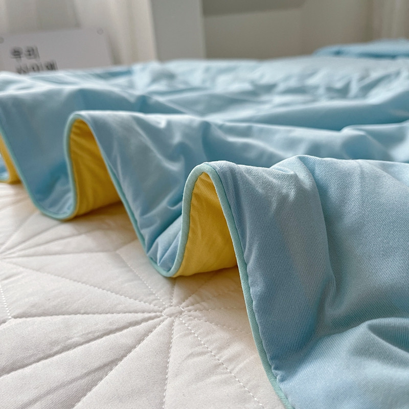 星期八 2021新款马卡龙大豆针织棉夏被 蓝-黄