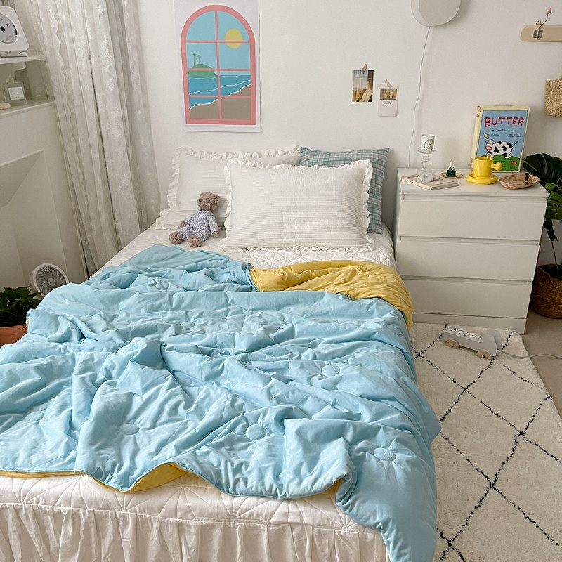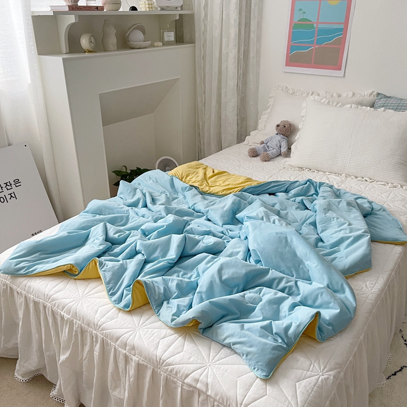 商品名称:星期八 2021新款马卡龙大豆针织棉夏被 蓝-黄