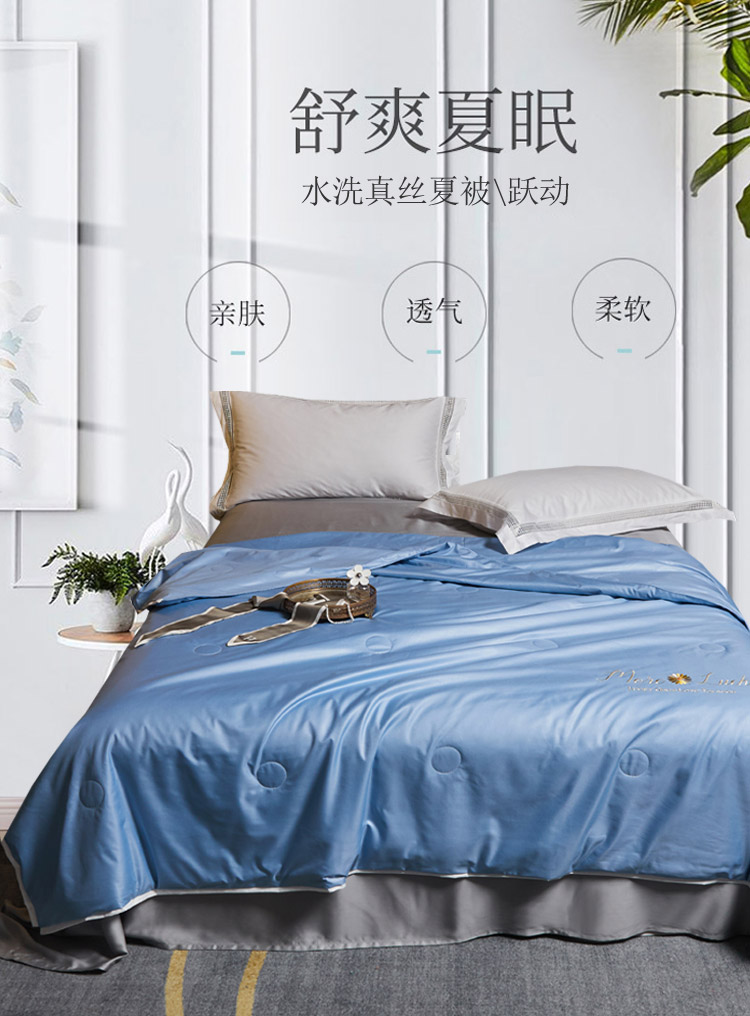 商品名称:凡客 2021春夏新款水洗真丝夏被 伯爵蓝