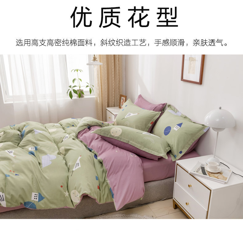 (总)星期三 2021年4月新款全棉13372四件套(加老板微信有会员价),彩色世界,点点星光-粉,点点星光-灰,书香年华,晚风-绿,叶之雨露,玉树花开