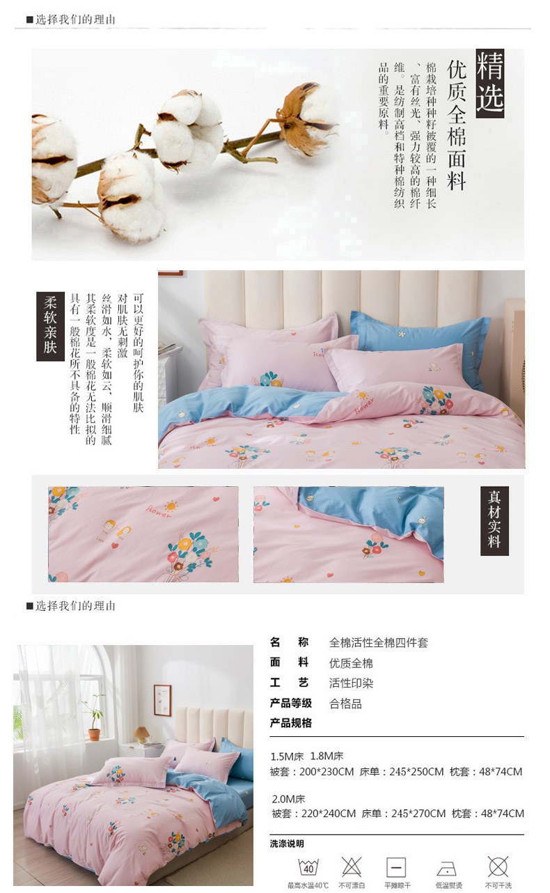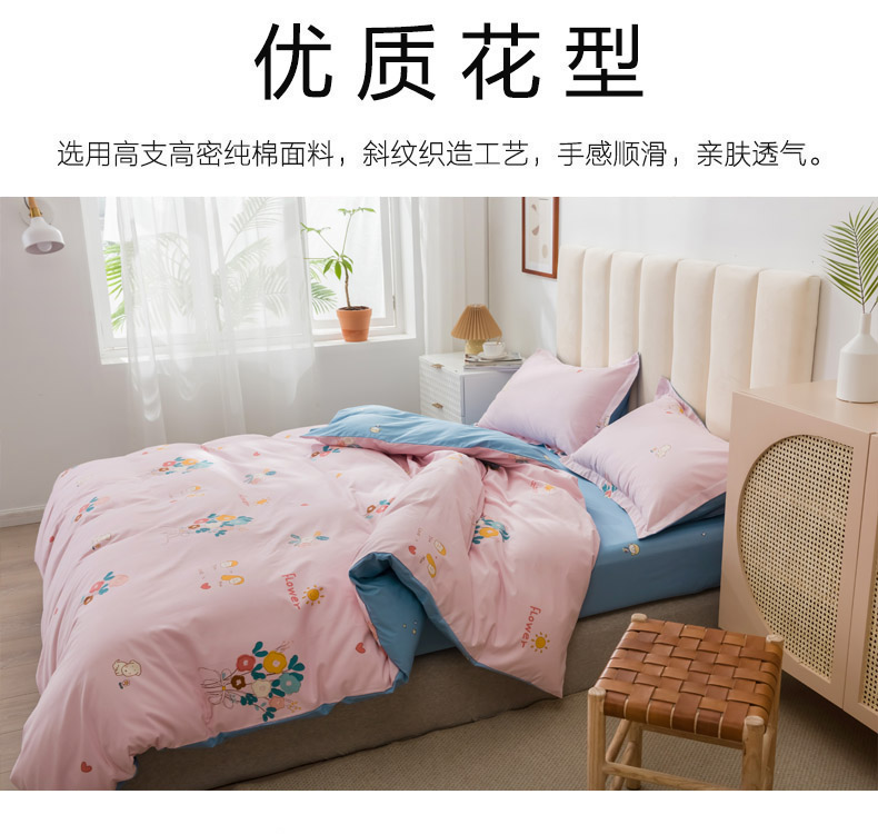 商品名称:星期三 2021新款卡通系列全棉13372四件套(加老板微信有会员价) 亲爱的-粉