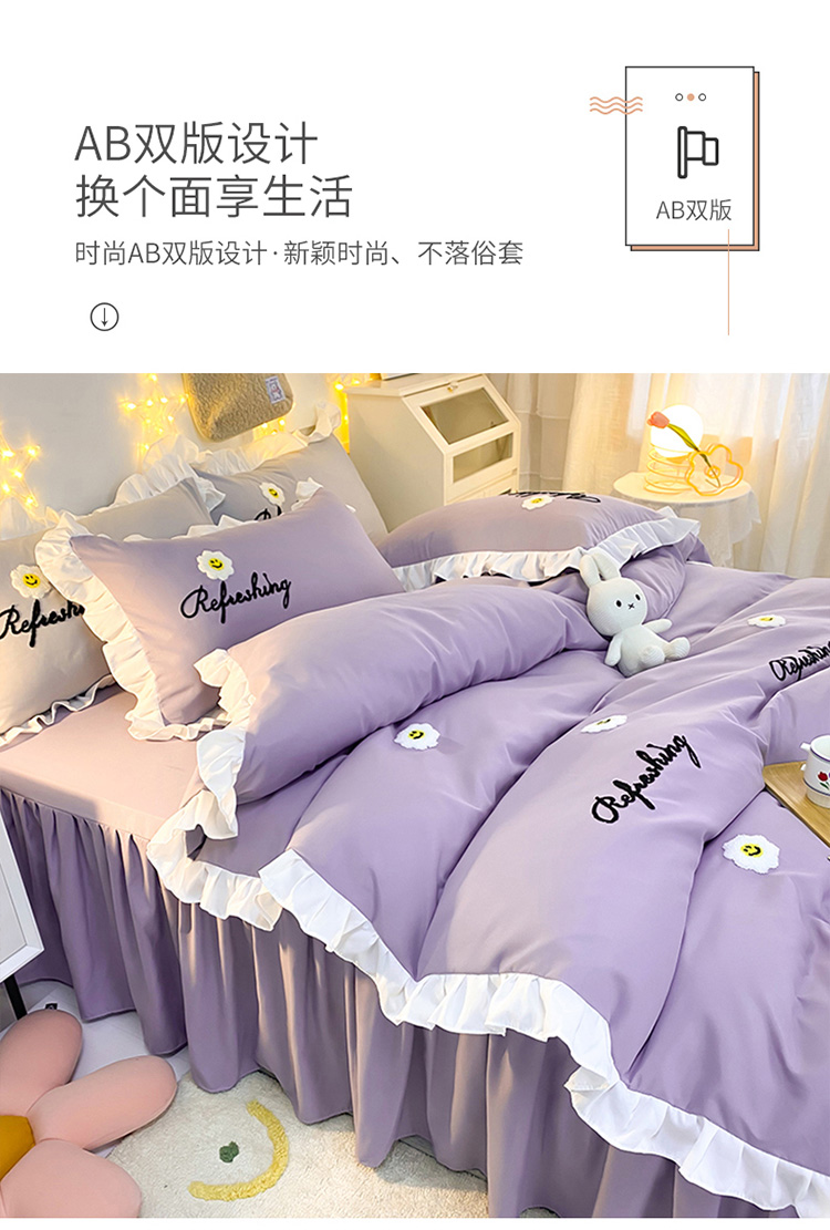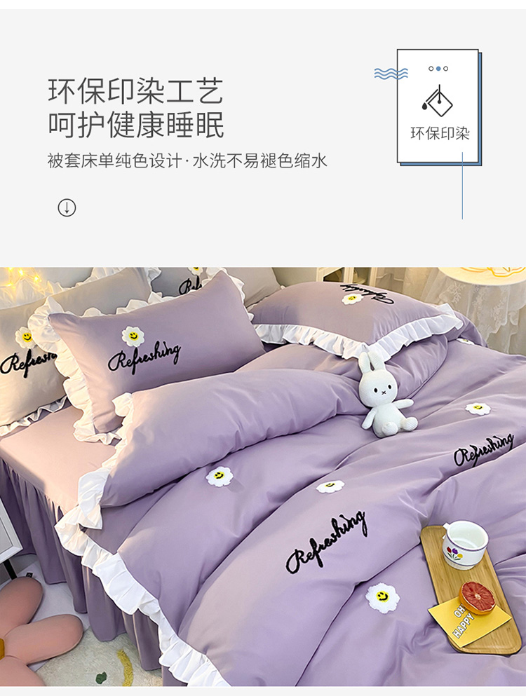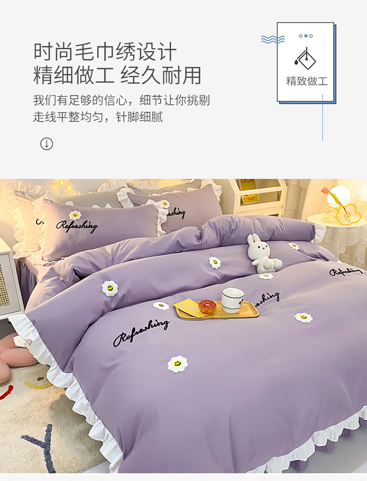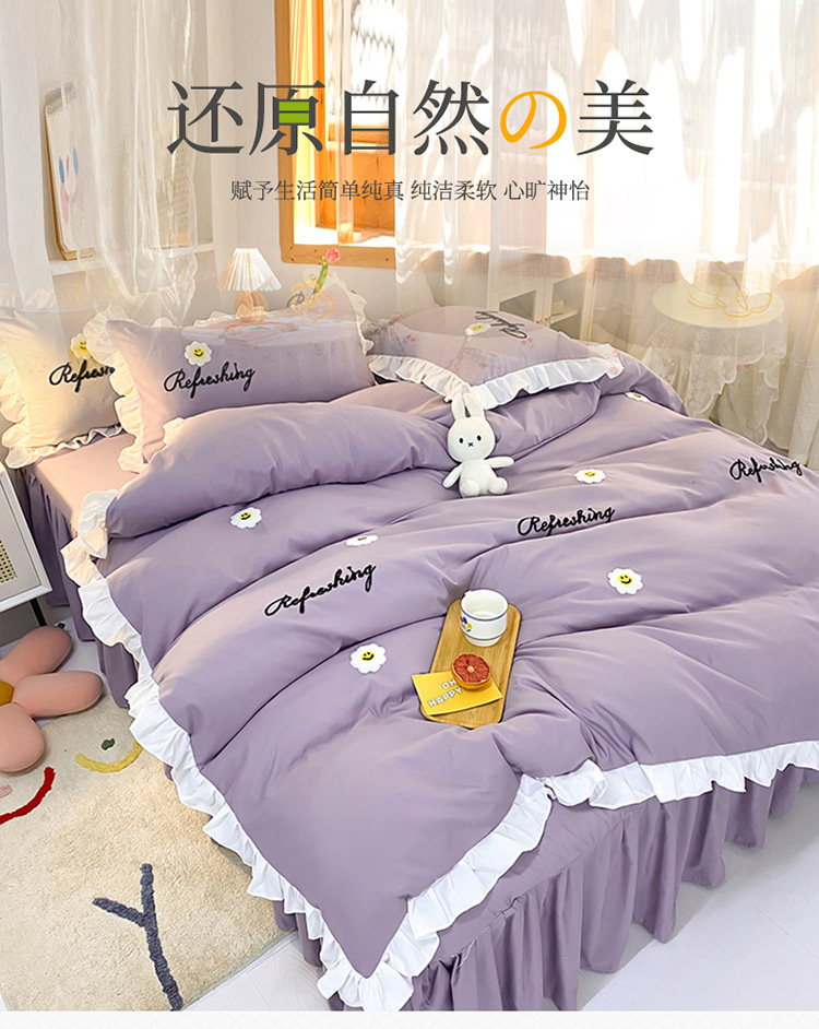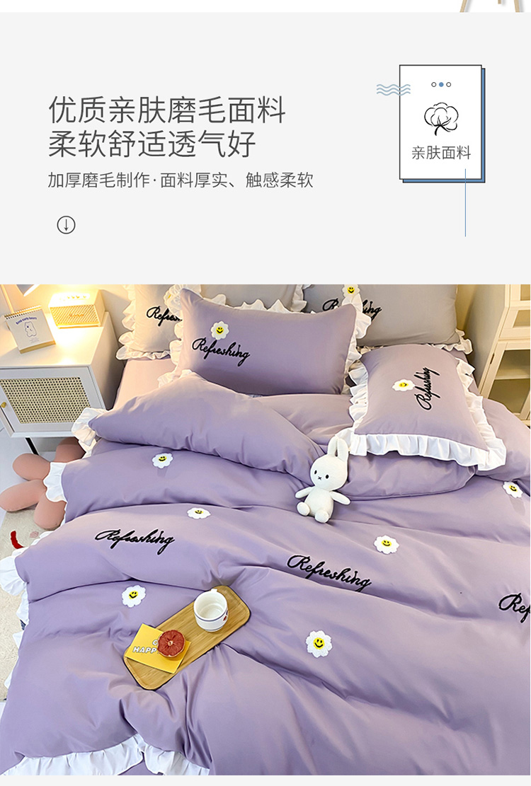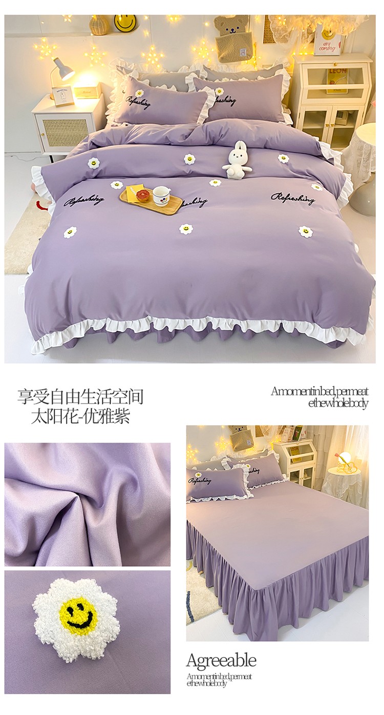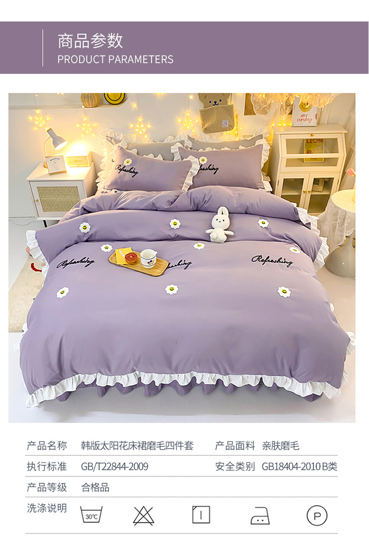 当前位置: 91家纺网 > 商品网购 > 床品套件 > 四件套 > 普通磨毛四件套 > 包小包 2024新款韩版太阳花亲肤磨毛四件套 太阳花-优雅紫