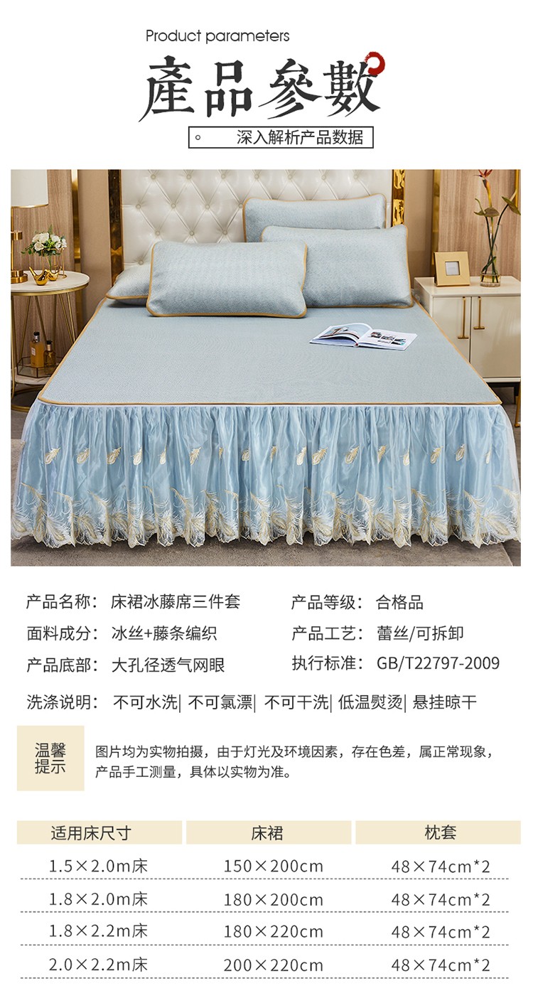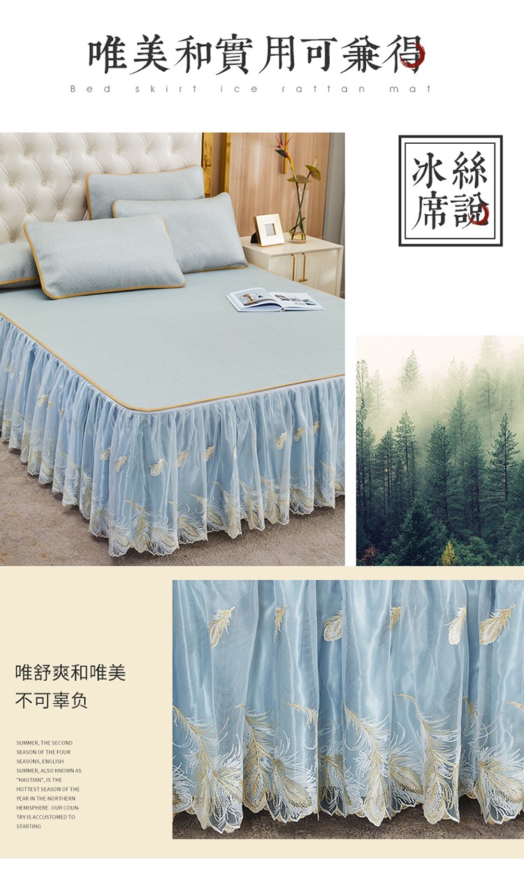 商品名称:网红馆 2025新款蕾丝花边宽边冰藤席 静谧蓝