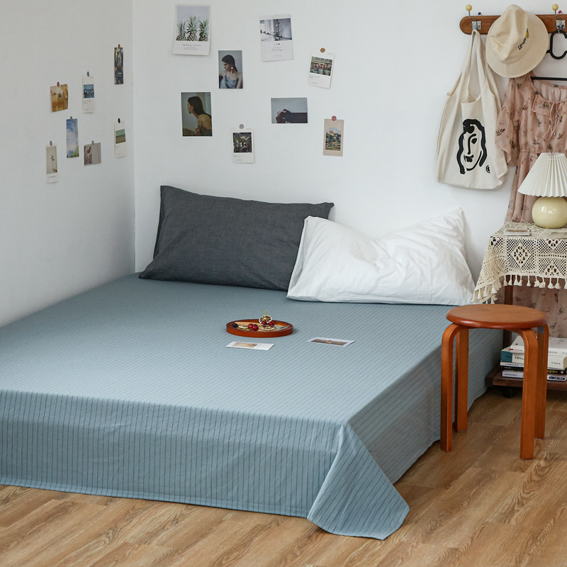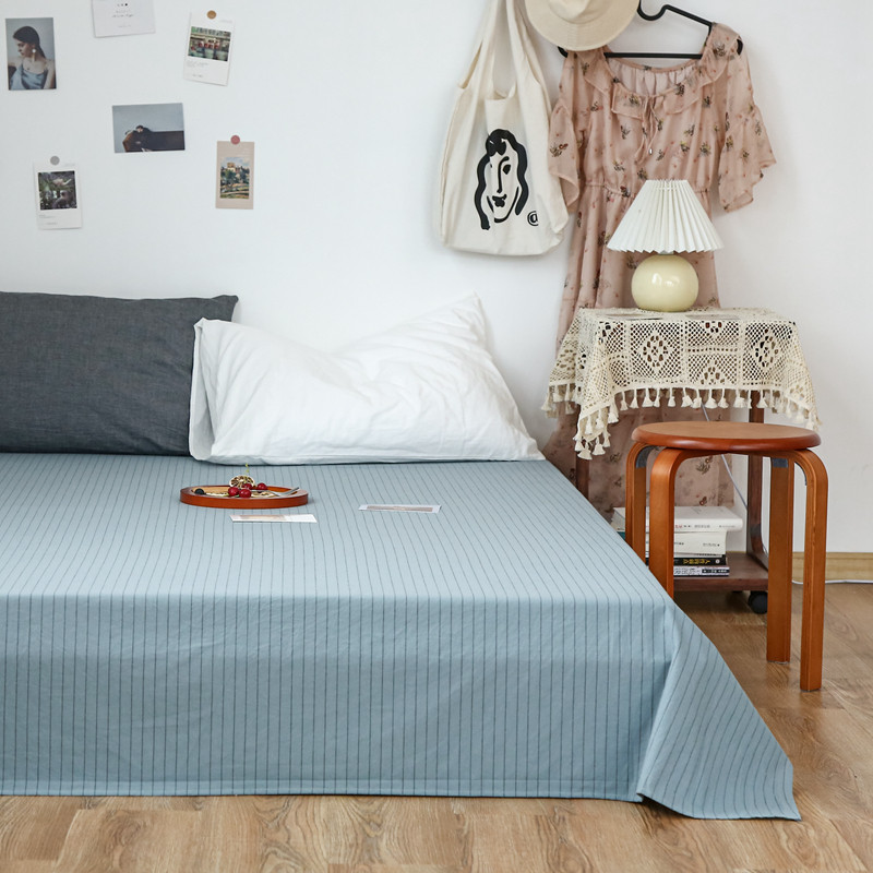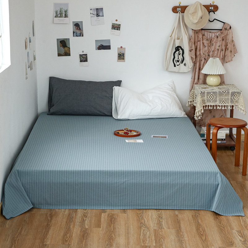 安莱生活 2021新款色织全棉水洗棉单床单 乌兰细条