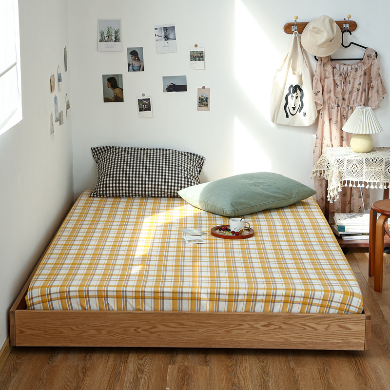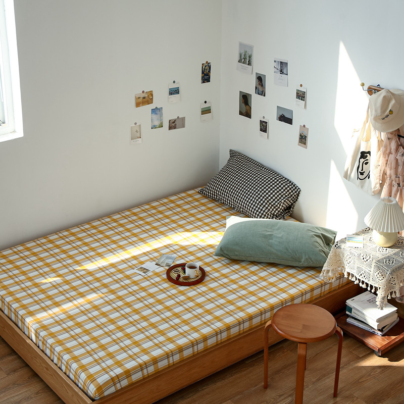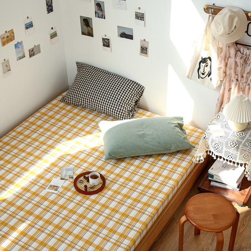 安莱生活 2021新款色织全棉水洗棉单床笠 芒果格