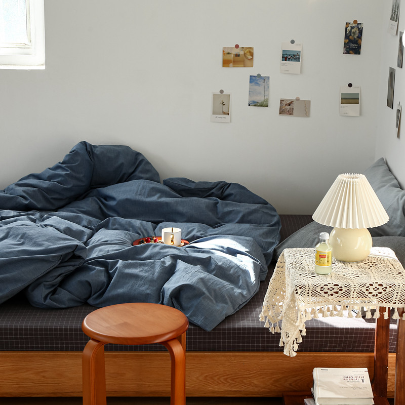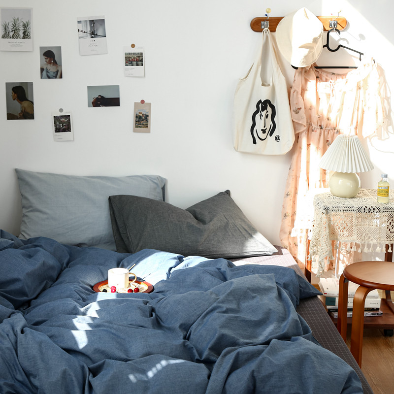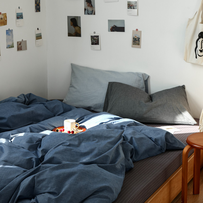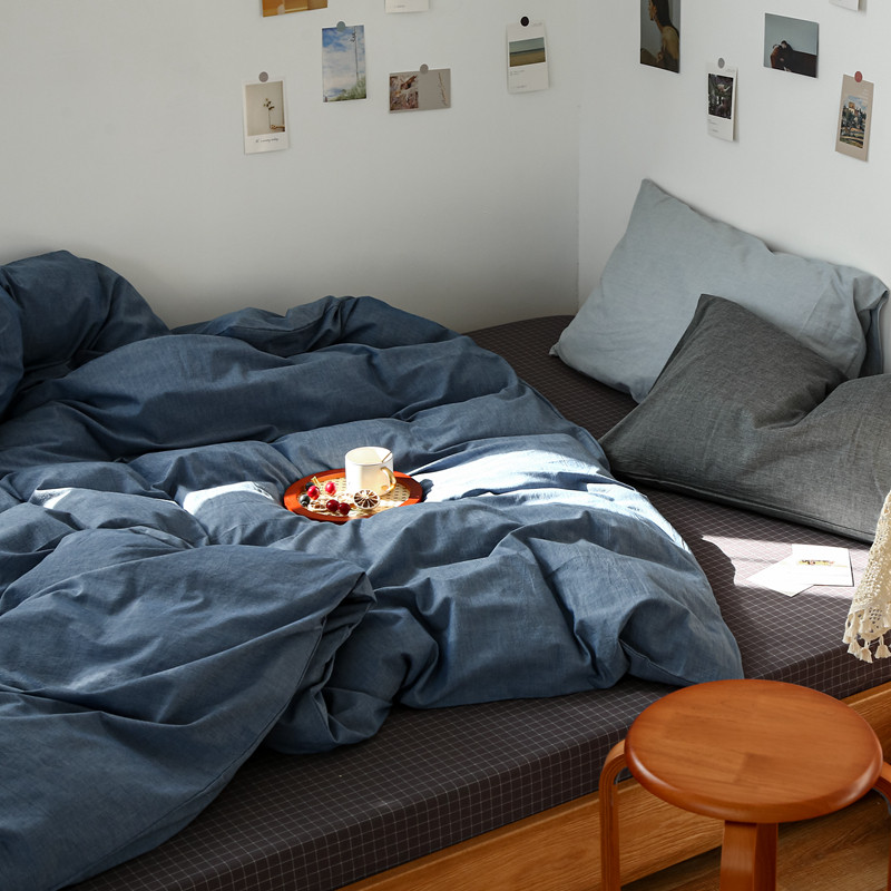 当前位置: 91家纺网 > 商品网购 > 床品套件 > 四件套 > 水洗棉四件套 > 安莱生活 2021新款色织全棉水洗棉混搭四件套 牛仔蓝+小灰格