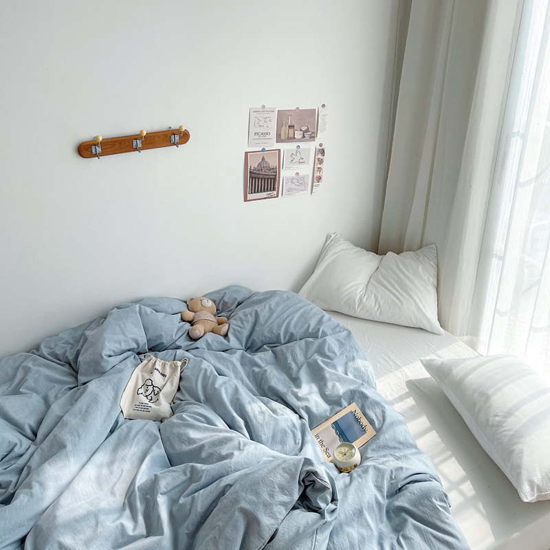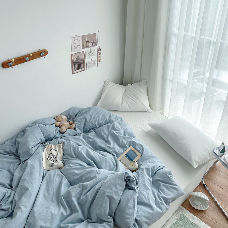 安莱生活 2021新款全棉水洗棉单被套 浅蓝
