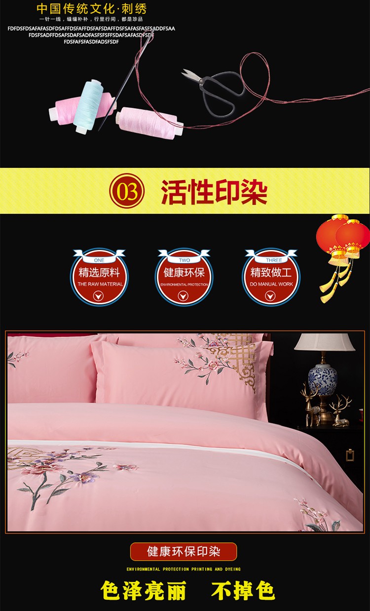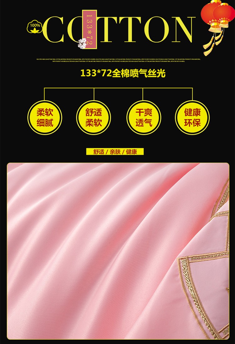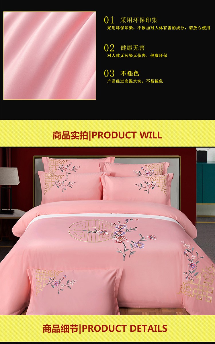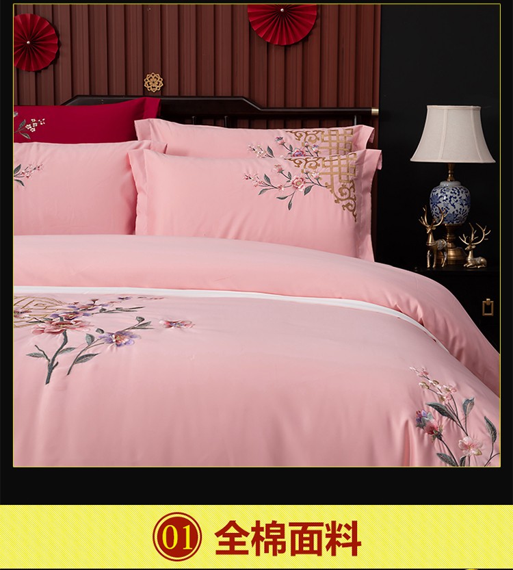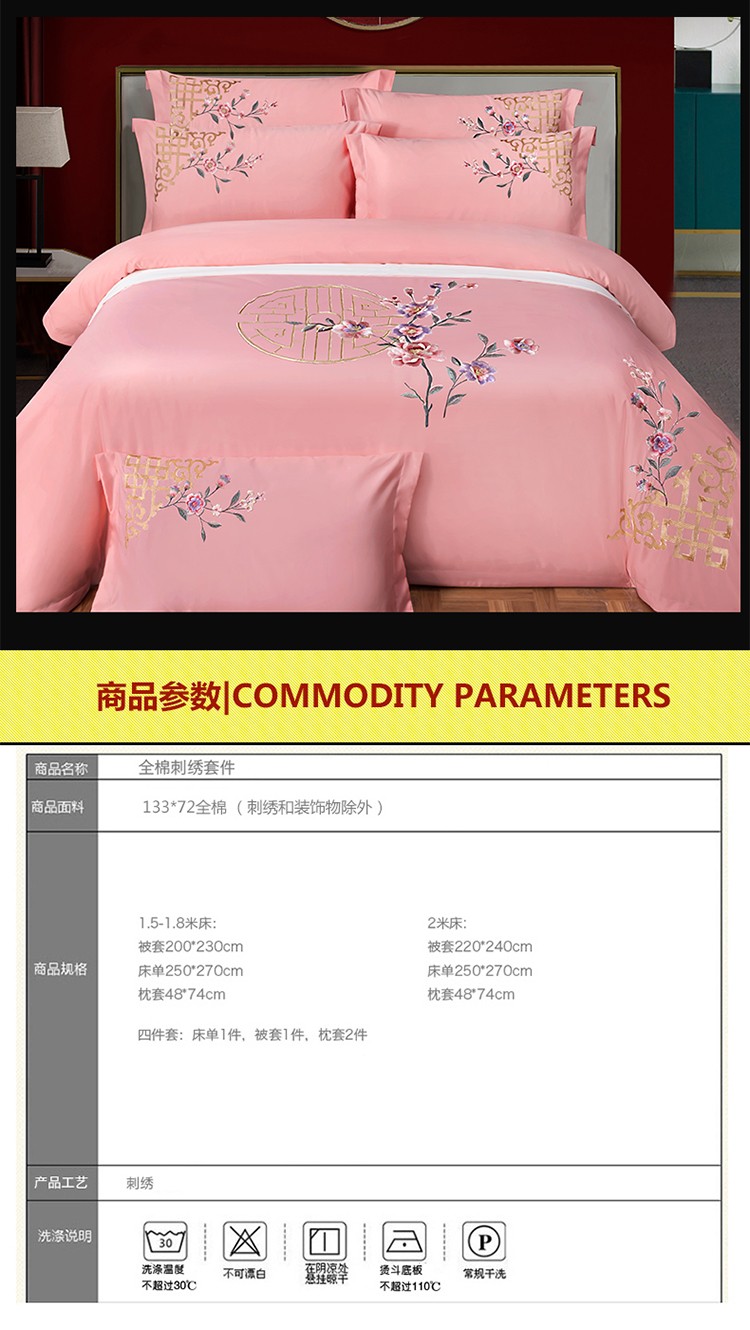 商品名称:婚庆四件套大红色刺绣花全棉纯棉结婚八色床上用品 暗香粉玉