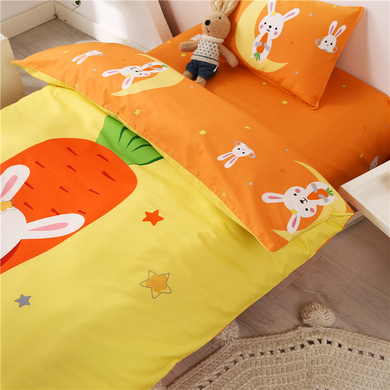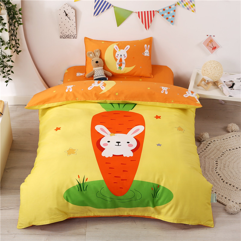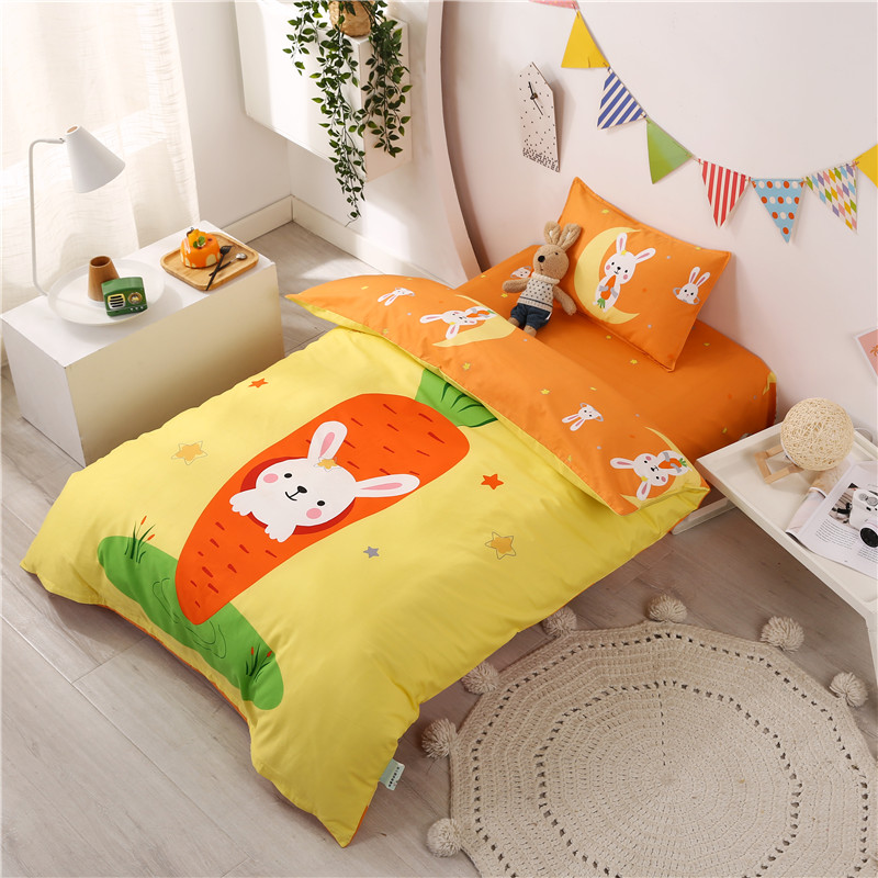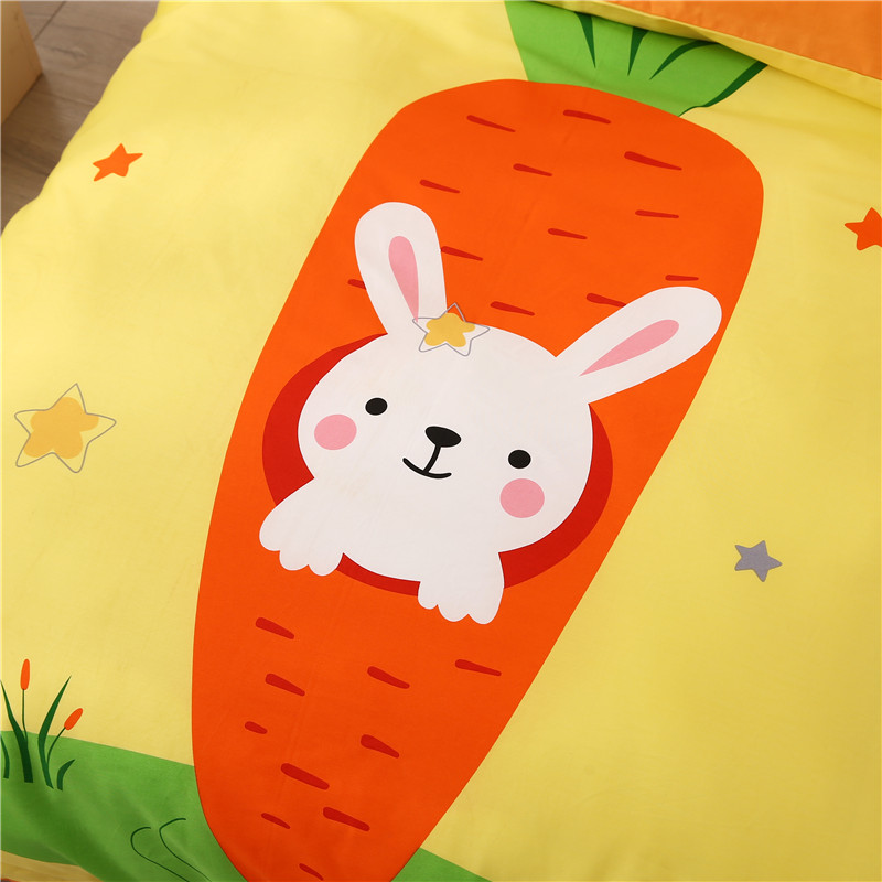 当前位置: 91家纺网 > 商品网购 > 床品套件 > 多件套 > 多件套 > 孩子王家纺 全棉13372大版卡通幼儿园多件套 萝卜兔