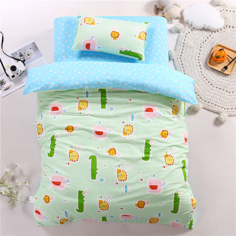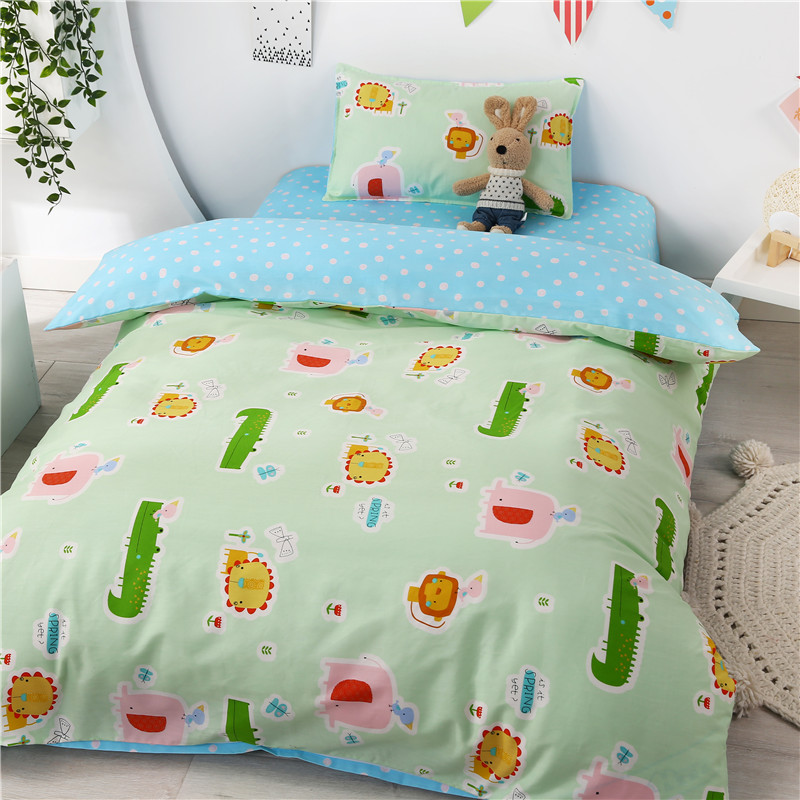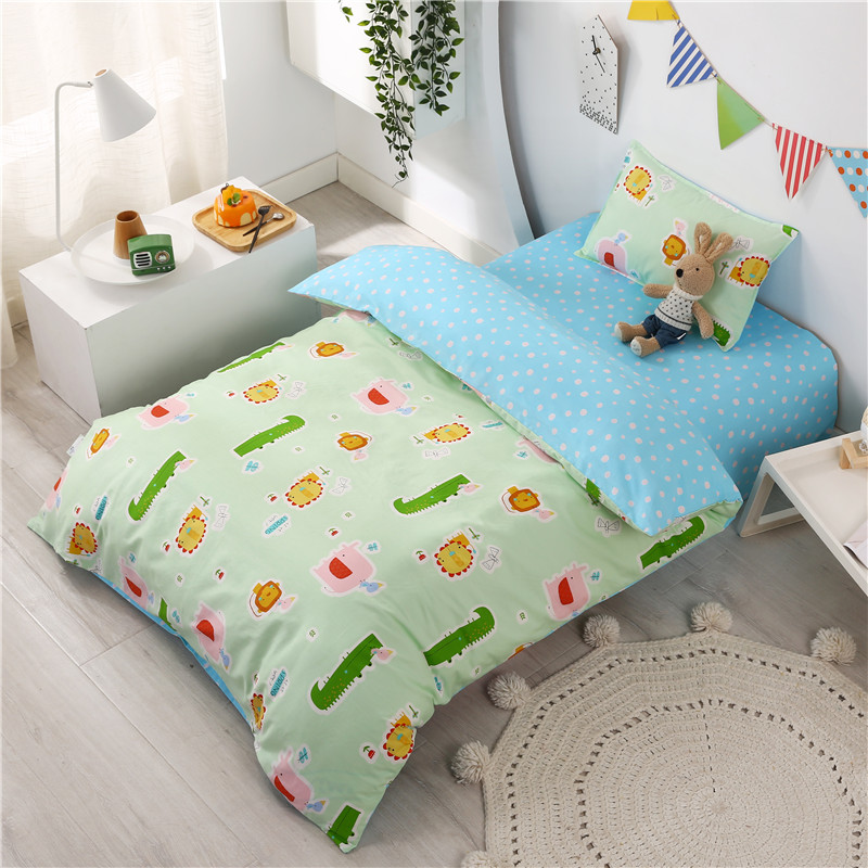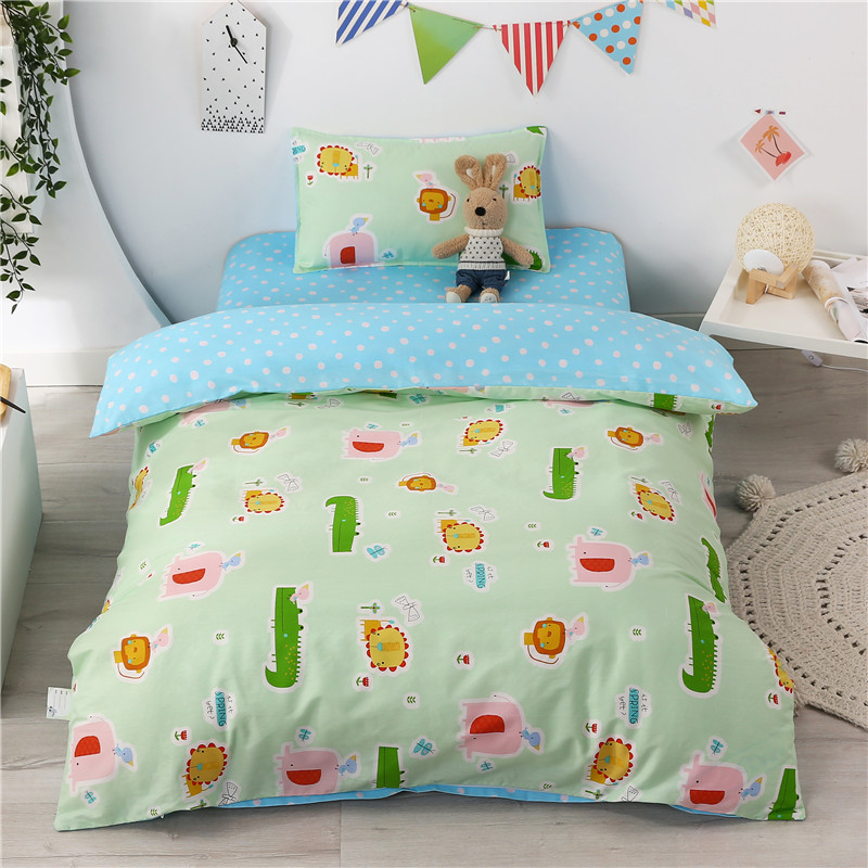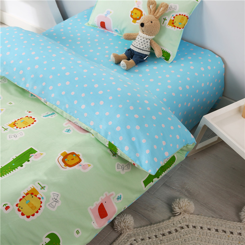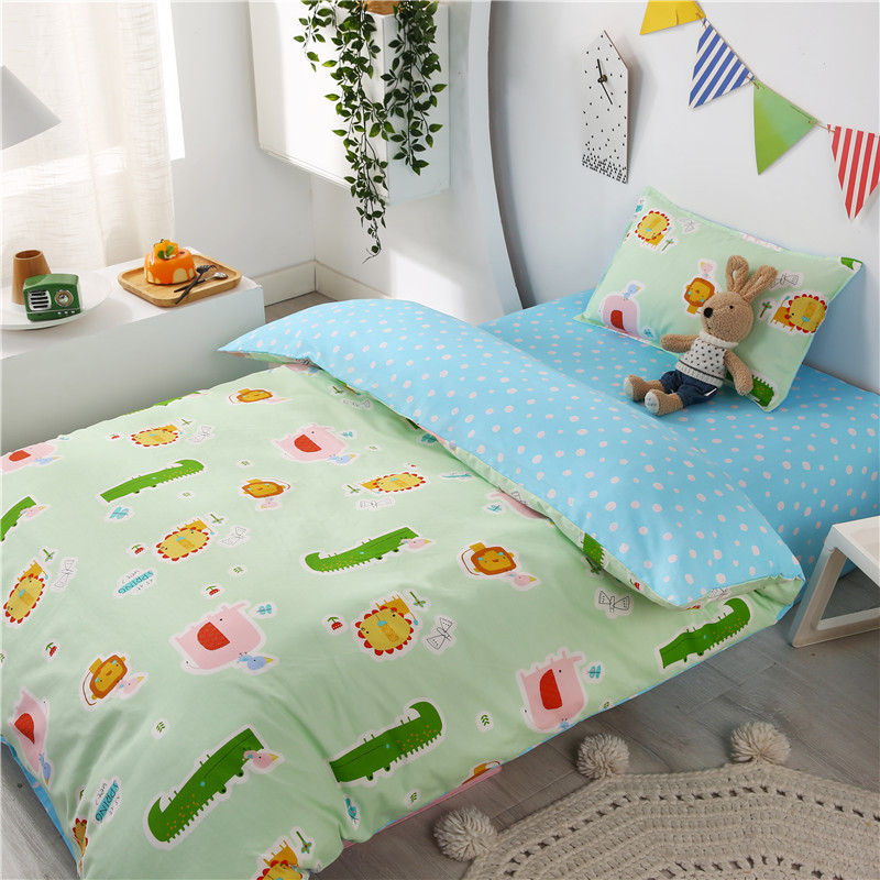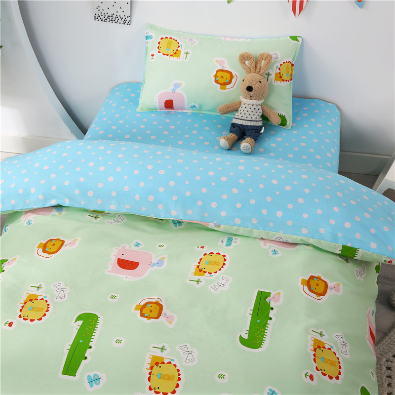 当前位置: 91家纺网 > 商品网购 > 床品套件 > 多件套 > 多件套 > 孩子王家纺 全棉13372小版卡通幼儿园多件套 动物星球