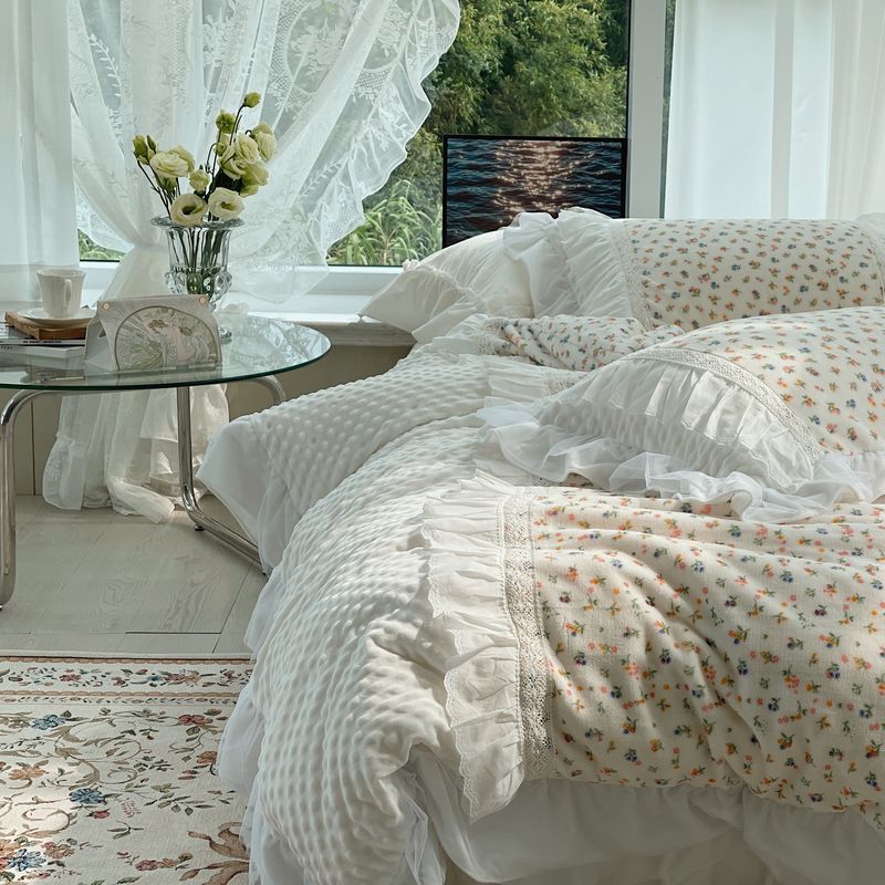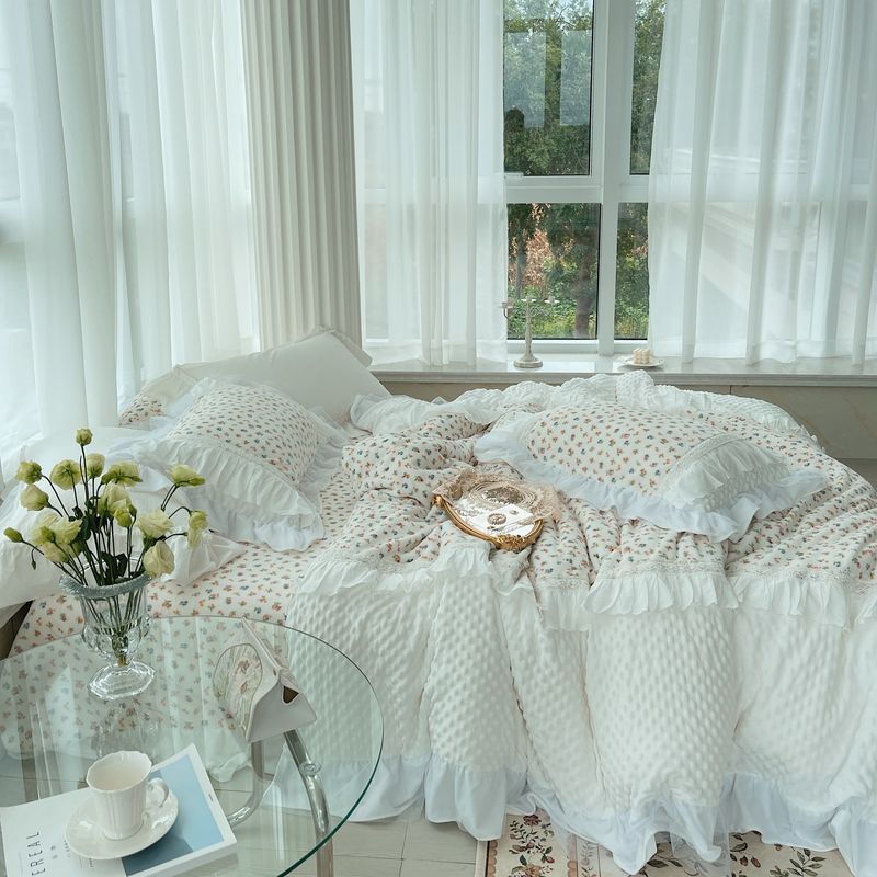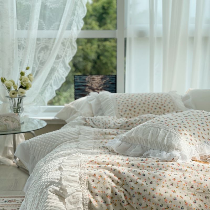 (总)嗨购家纺 2025新款亲肤舒适双层纱四件套-花期漫漫,花期漫漫
