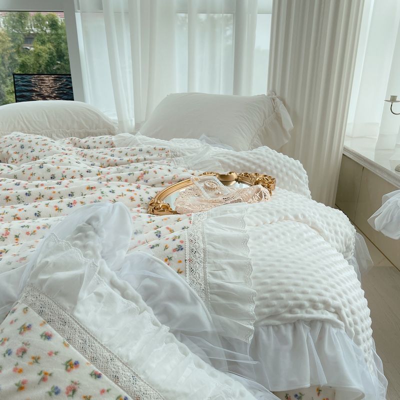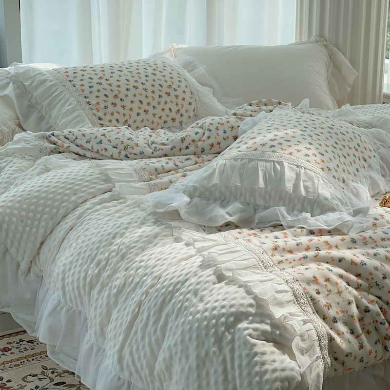 2021网红直播爆款秋冬碎花绒四件套牛奶绒四件套 风信子