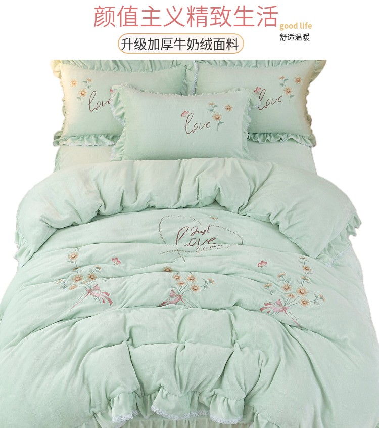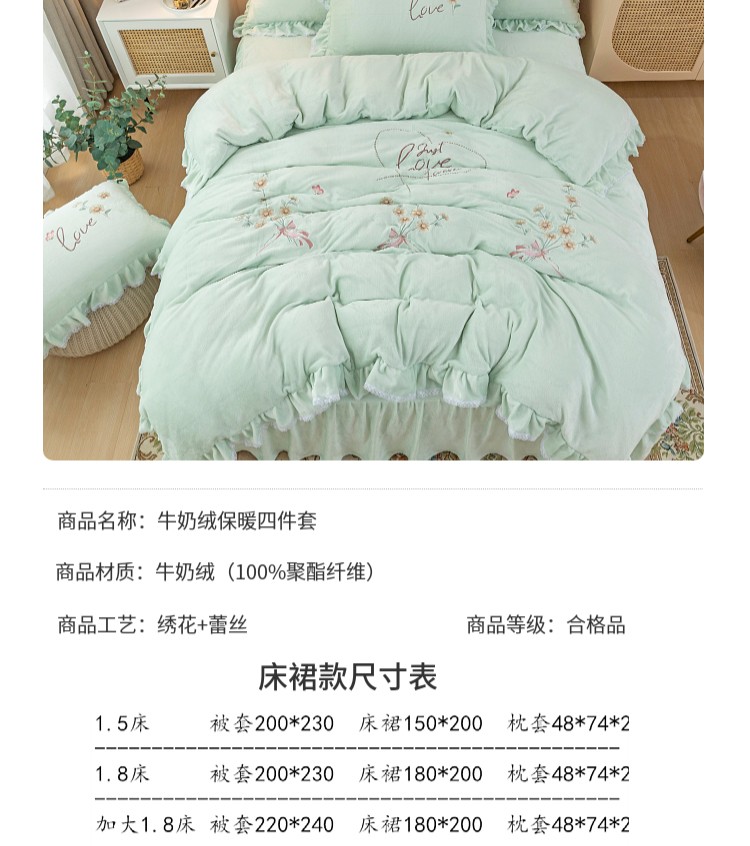 当前位置: 91家纺网 > 商品网购 > 床品套件 > 四件套 > 牛奶绒四件套 > (总)亲亲公主2025秋冬保暖新款牛奶绒保暖四件套绣花四件套