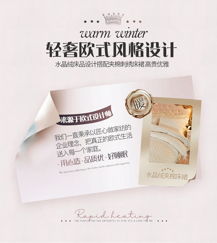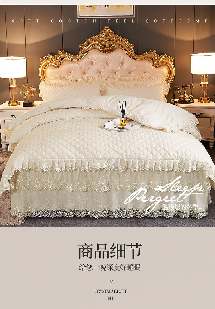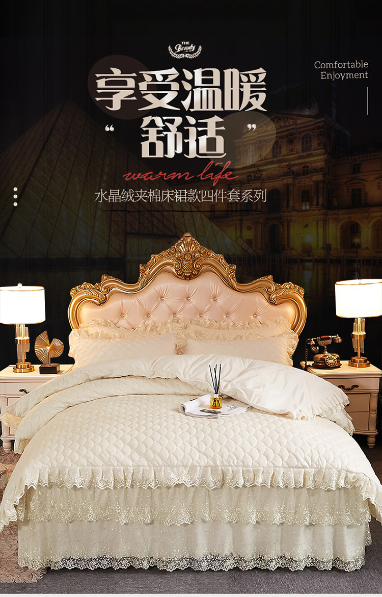 当前位置: 91家纺网 > 商品网购 > 床品套件 > 四件套 > 水晶绒四件套 > 恒爱2021新款水晶绒夹棉床裙款翩翩花舞系列四件套 米白色