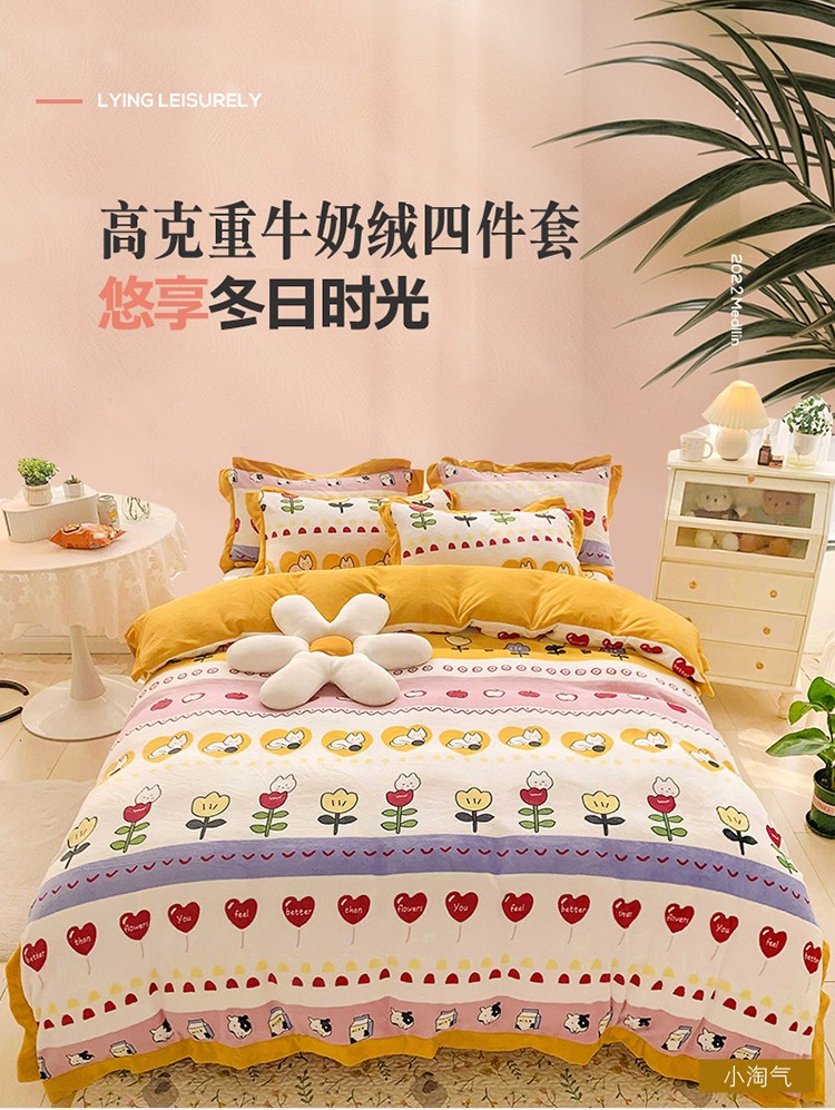 金爱家 2021新款高克重牛奶绒四件套 小淘气