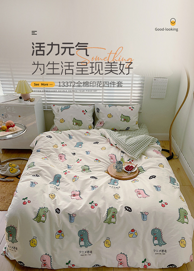 (总)雅居纺家纺 2022新款13070全棉印花四件套,波纹,多彩,简笔画,莓关系,奶油绿豹纹,倾心,数字