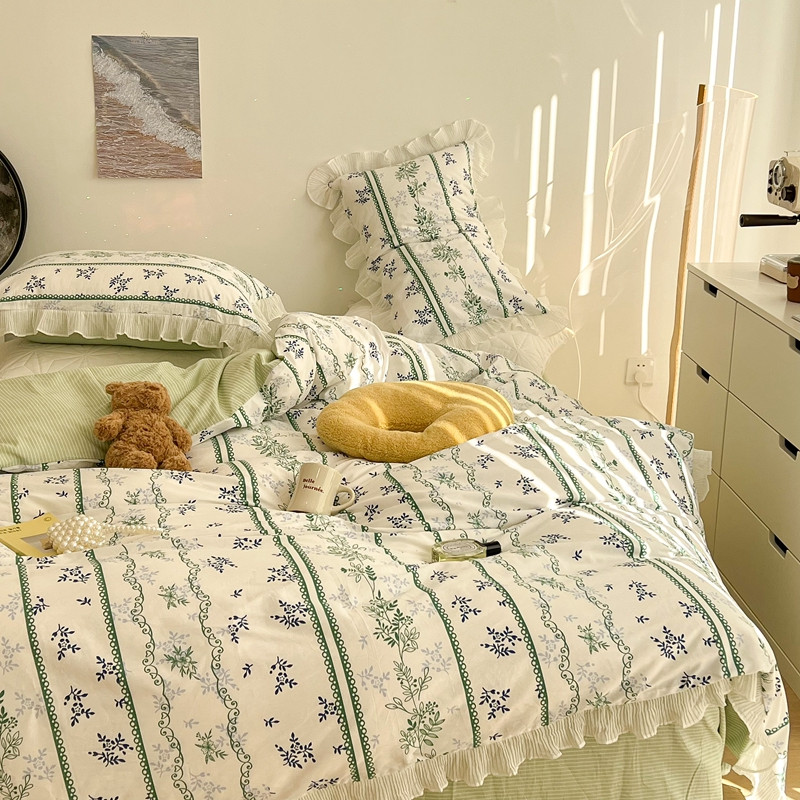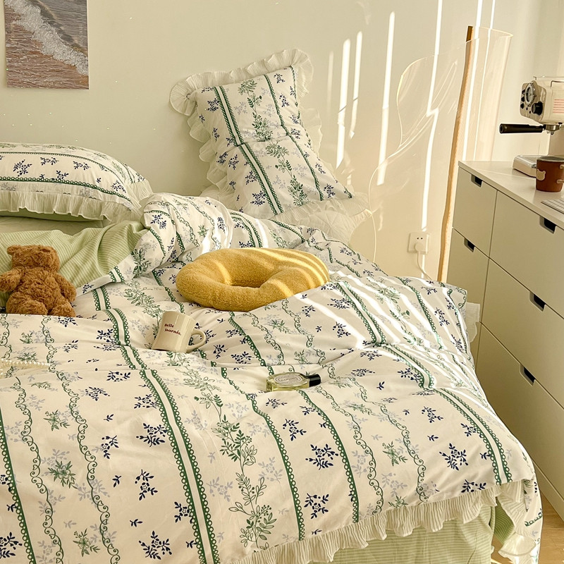 昔可家纺 2022新款13372全棉百褶花边四件套 仙仙蕾丝花