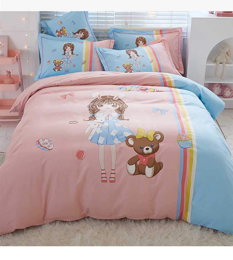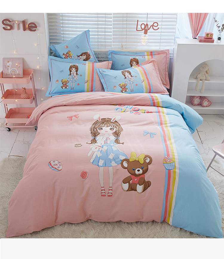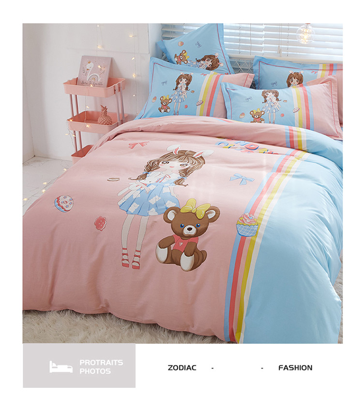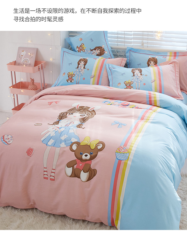 商品名称:金纱玉纺 2022新款全棉13372大版印花四件套 少女梦