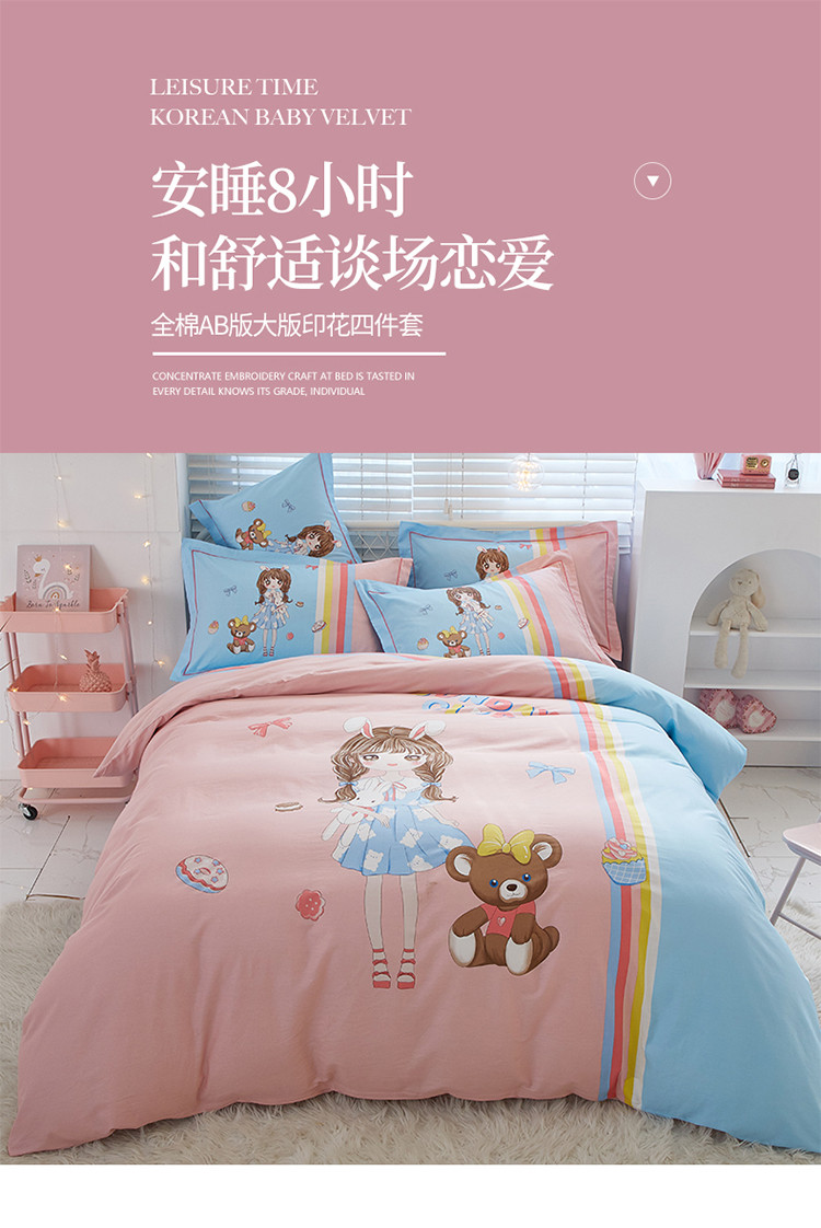 金纱玉纺 2022新款全棉13372大版印花四件套 少女梦