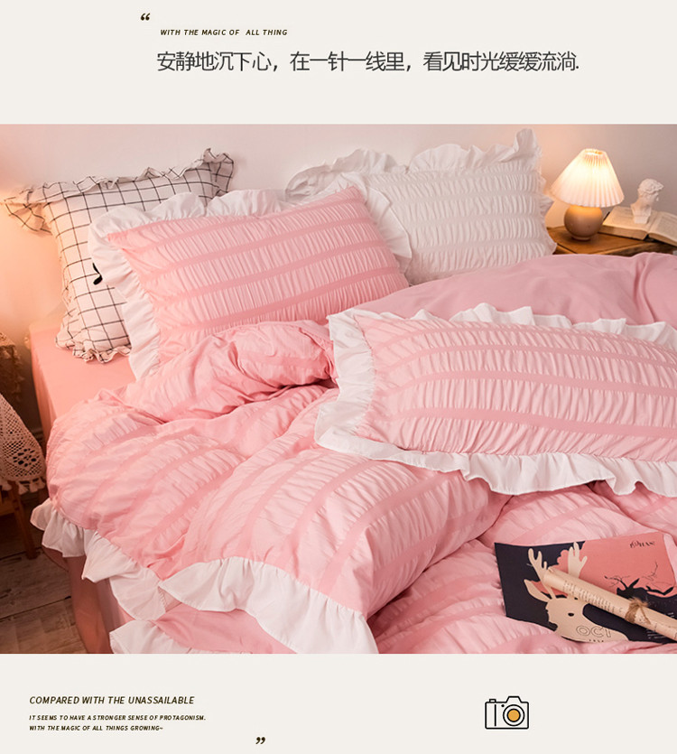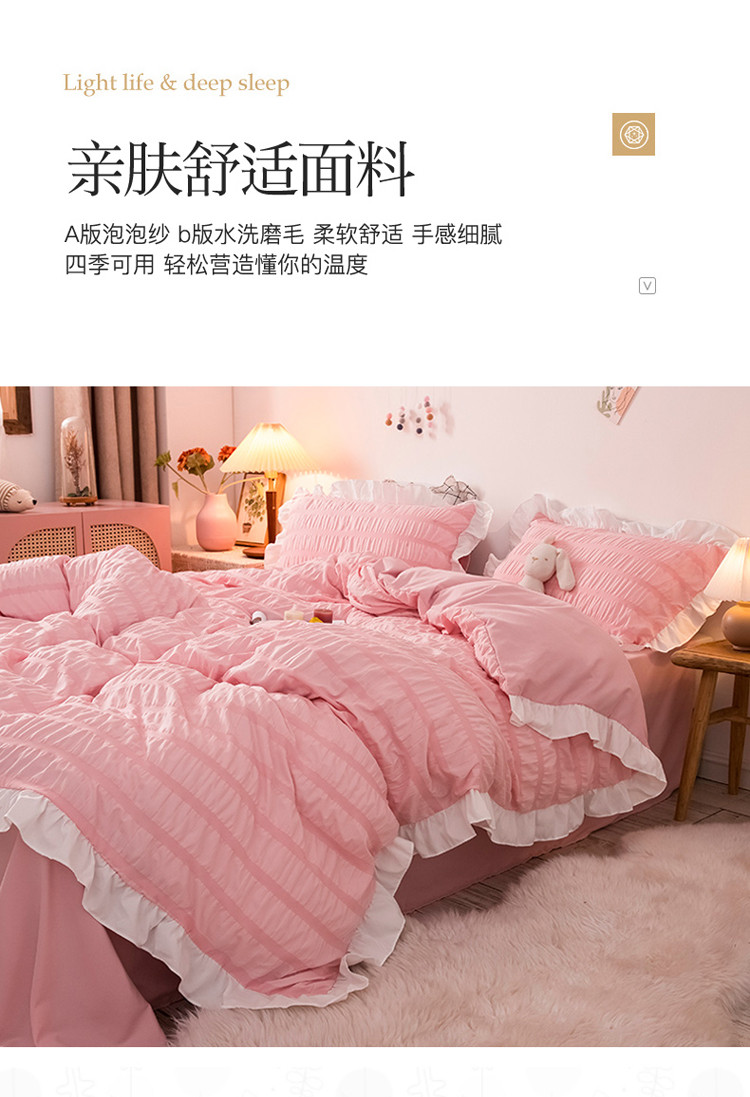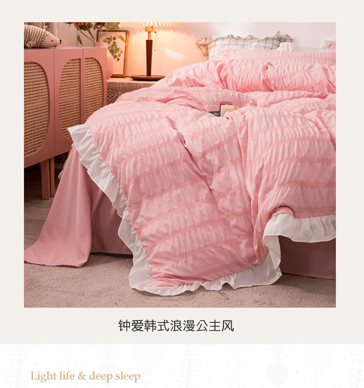 当前位置: 91家纺网 > 商品网购 > 床品套件 > 四件套 > 全棉普通四件套 > 慕澄 2022新款公主风泡泡纱花边四件套 公主粉