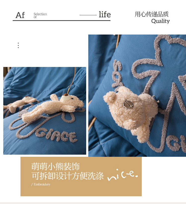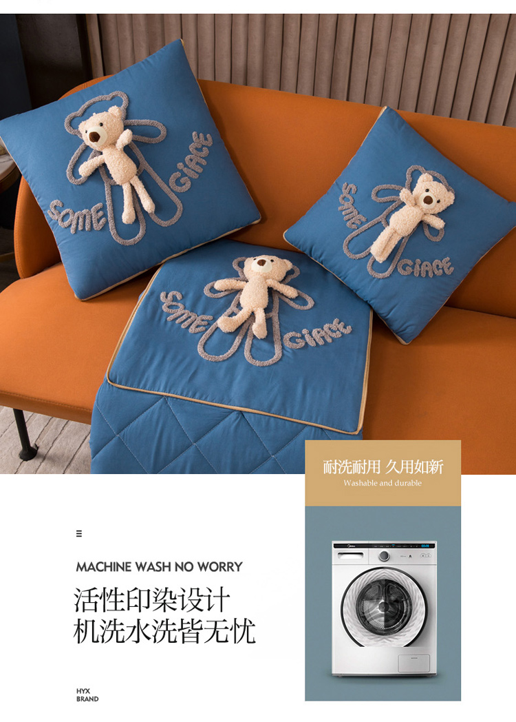 慕澄 2022新款玩偶熊可拆卸抱枕被 玩偶熊-宝石蓝