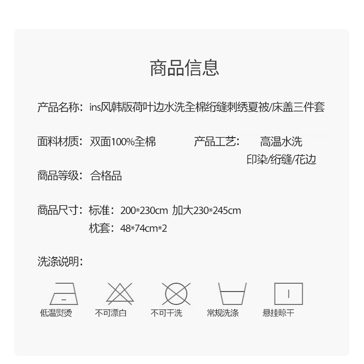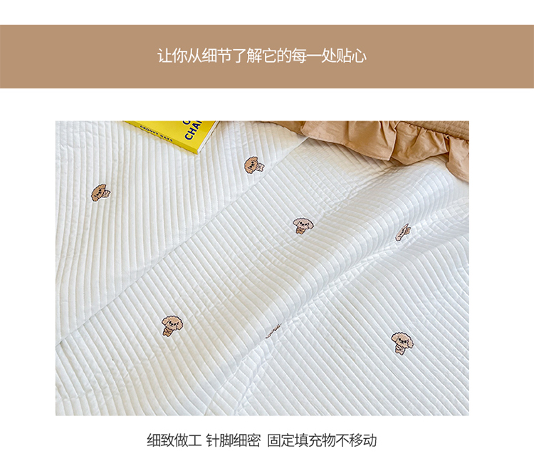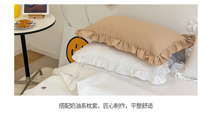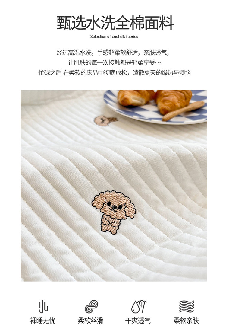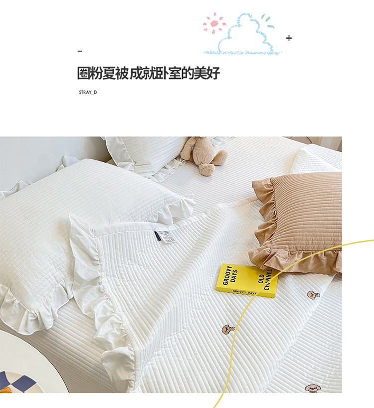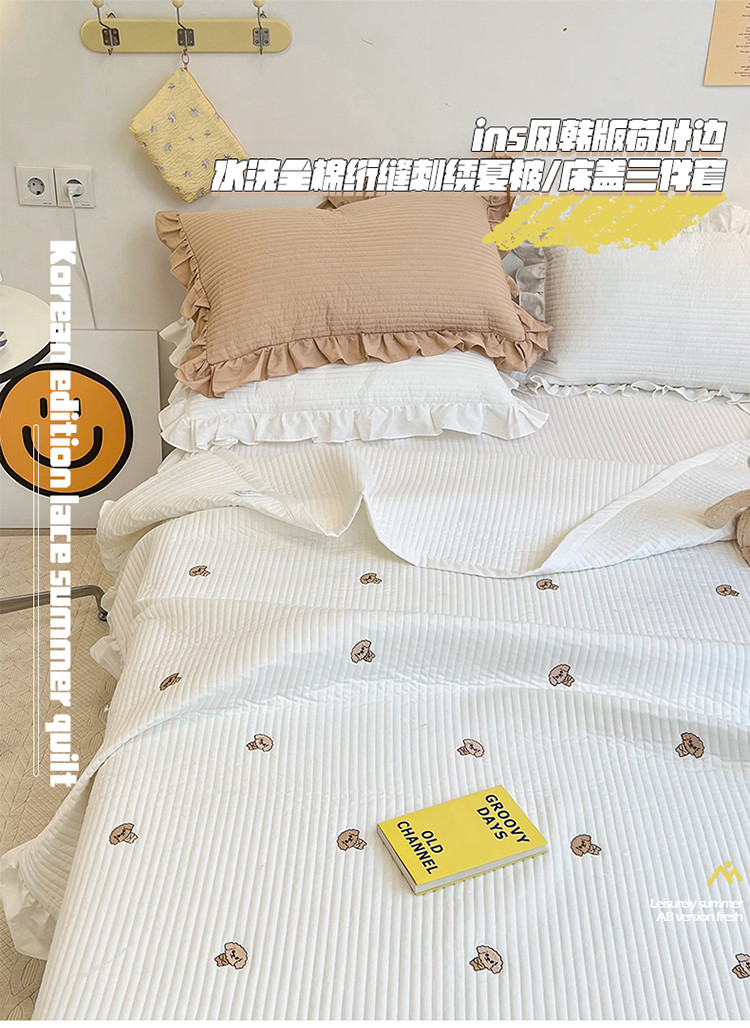 商品名称:漫调ins风韩版荷叶边水洗全棉绗缝刺绣夏被床盖三件套泰迪白