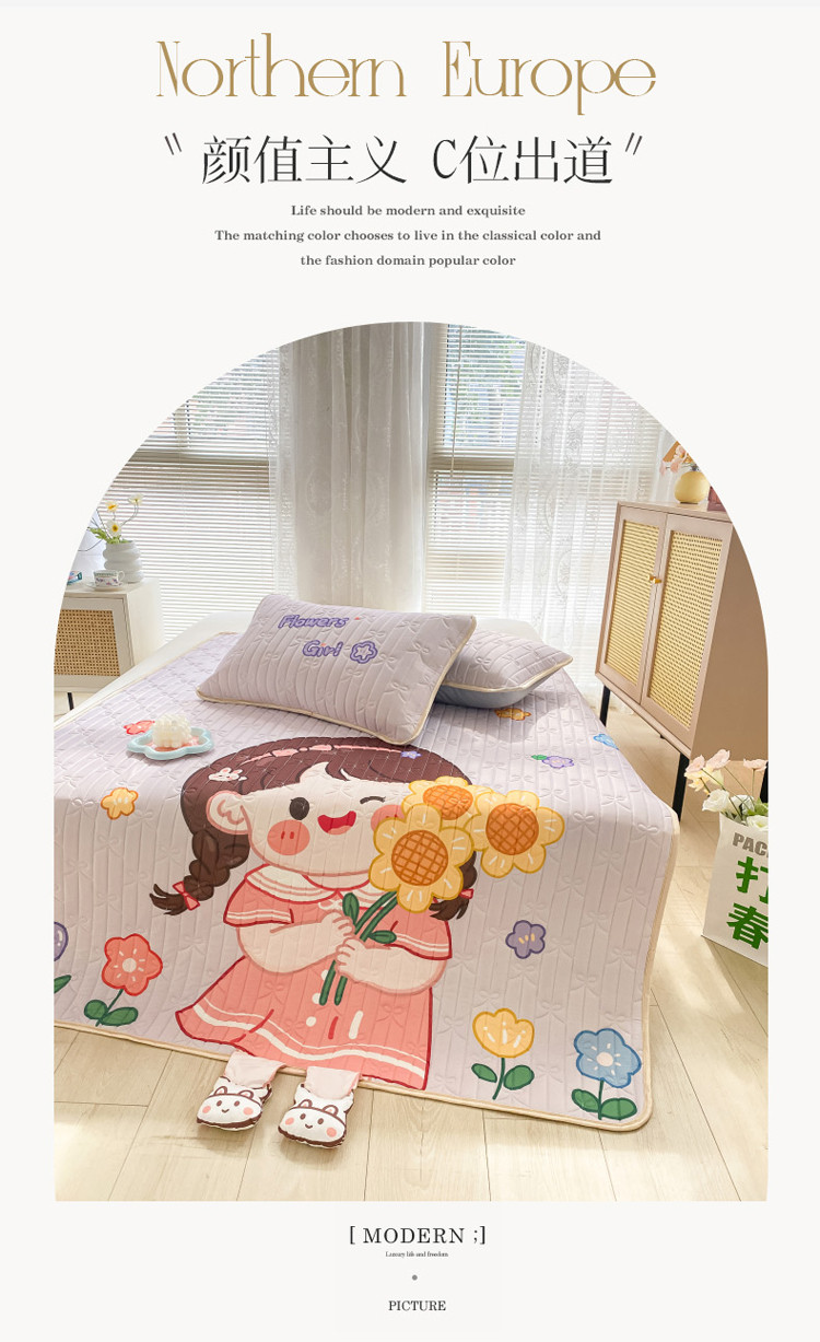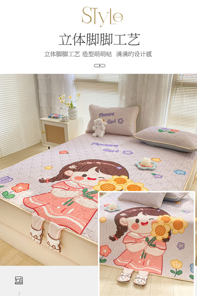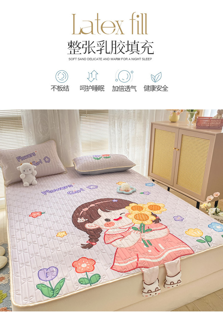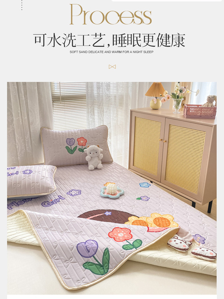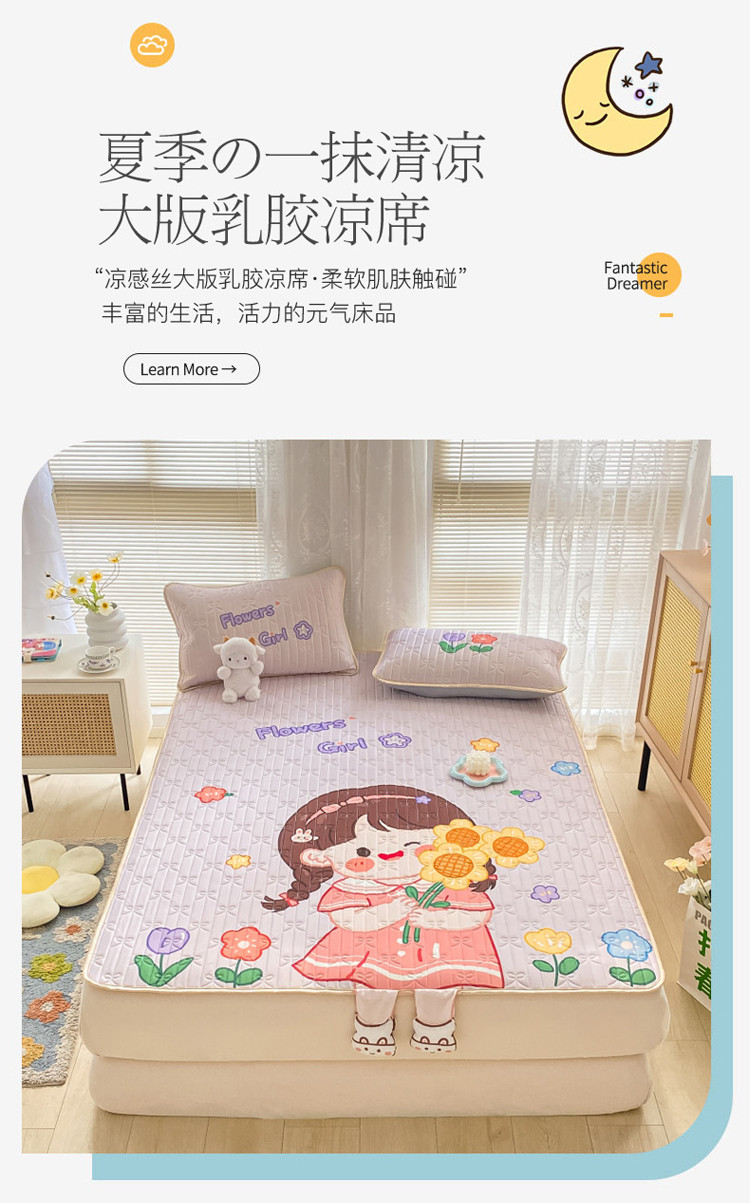 商品名称:沐慕 2022新款工艺款大版乳胶凉席 花花女孩-紫