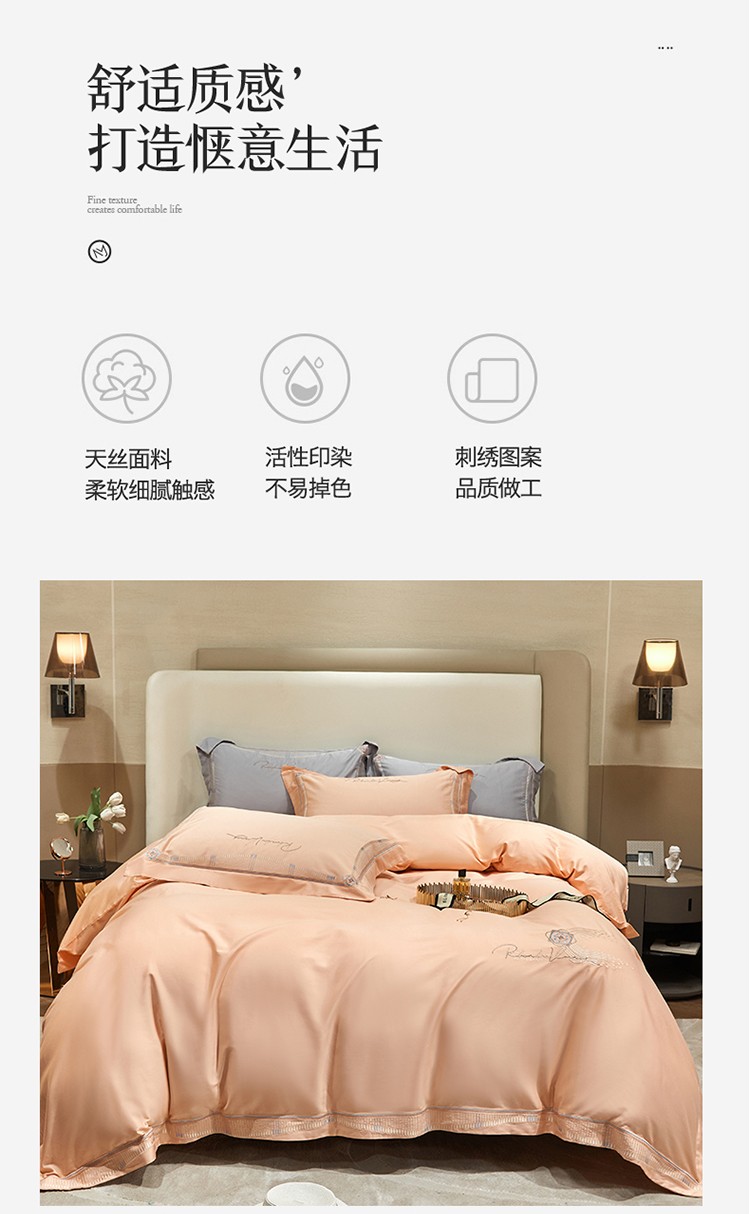 商品名称:2023名品优仓春夏直播爆款天丝棉四件套 慕尚-浅桔