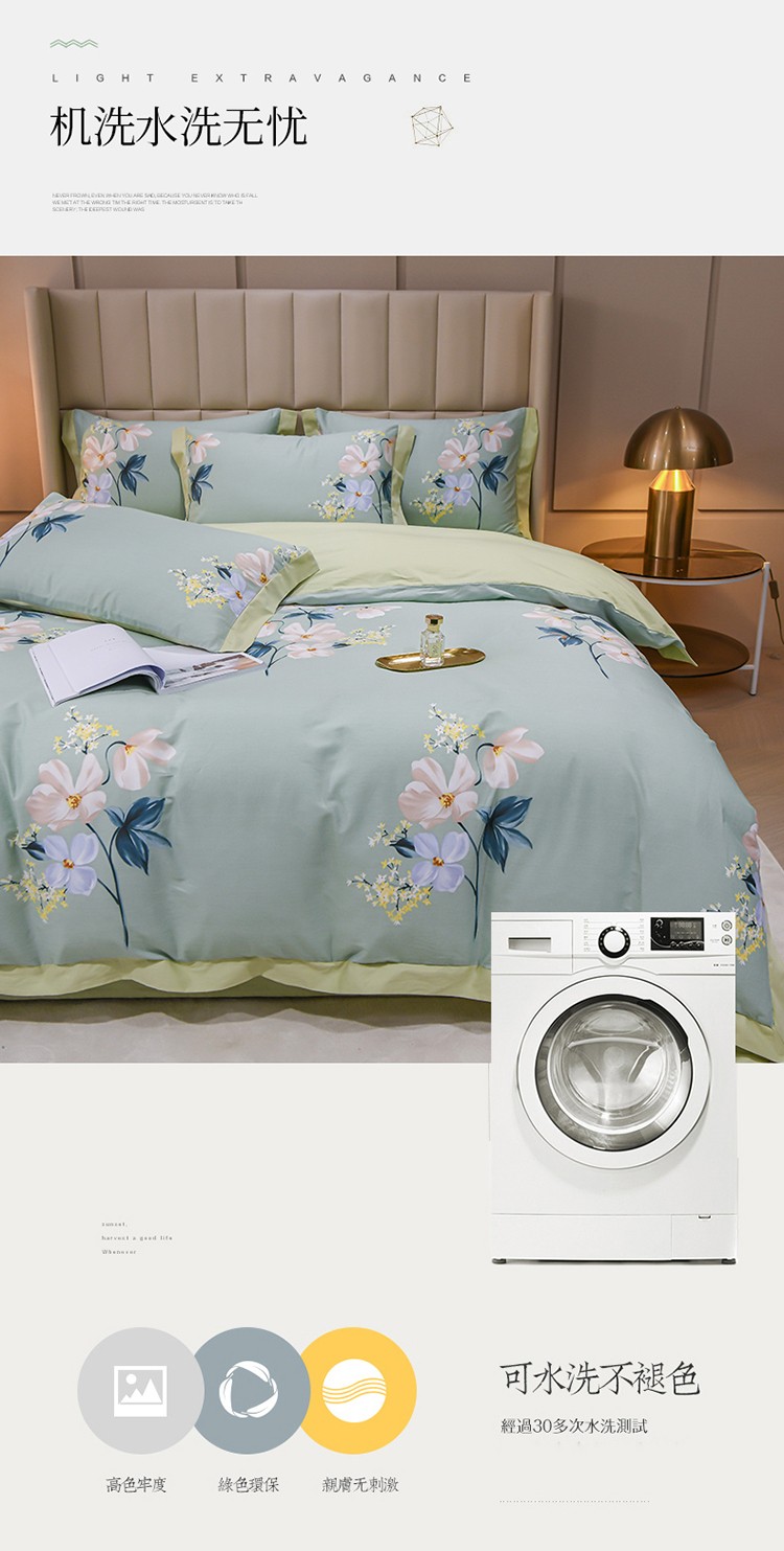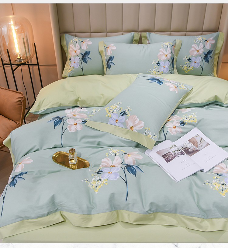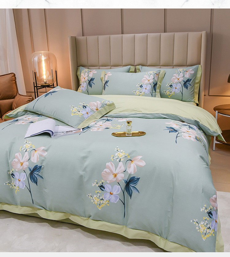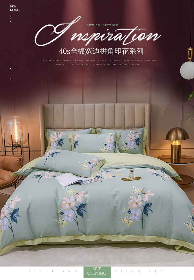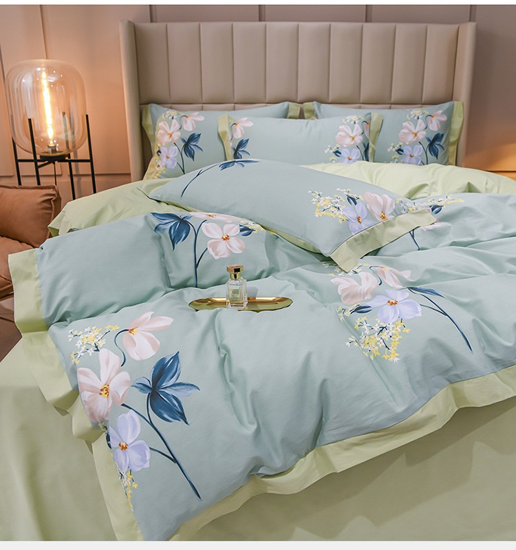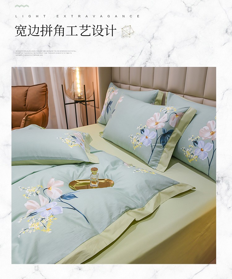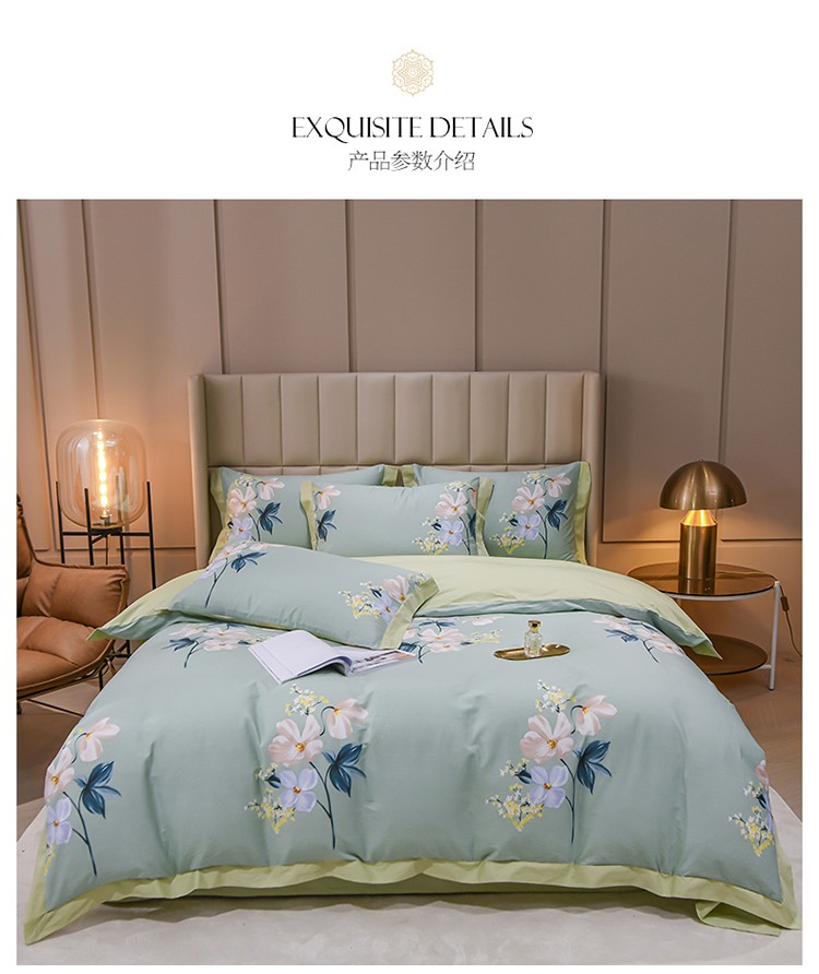 KA家纺2022新款40支贡缎长绒棉全棉工艺款四件套花媚柔情