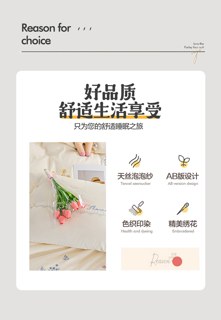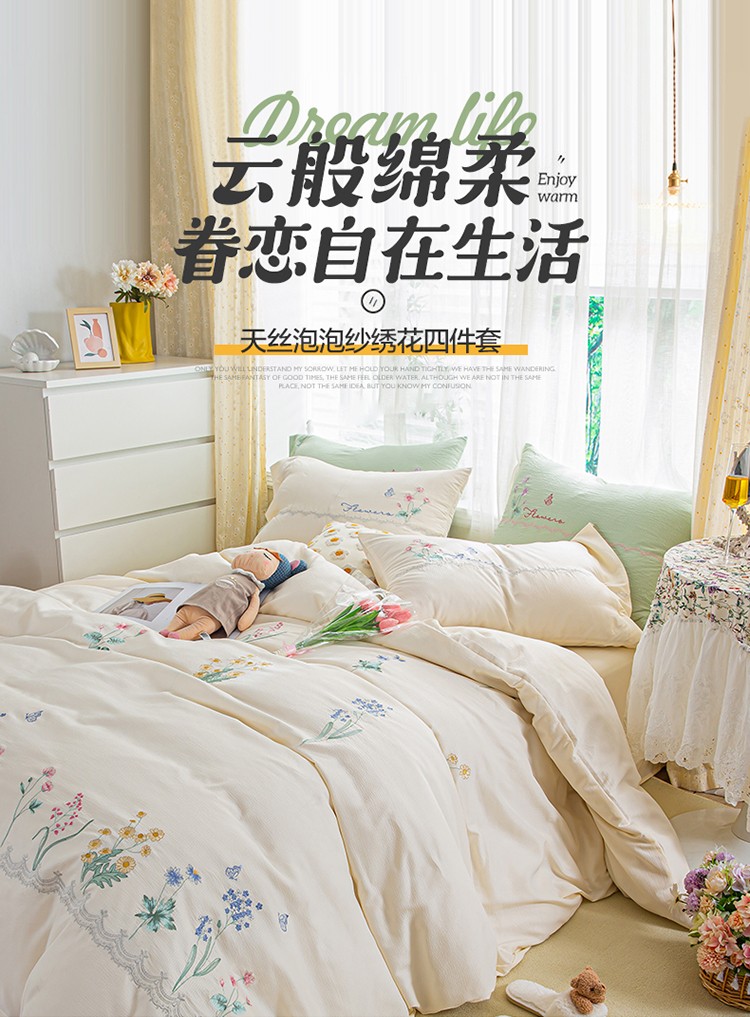 凡客 2022新款天丝泡泡纱绣花四件套-花园 花园-白