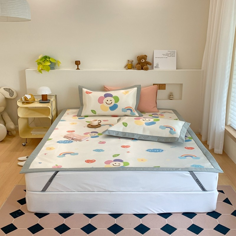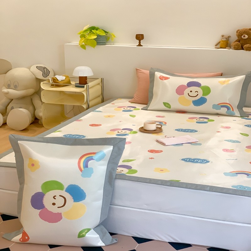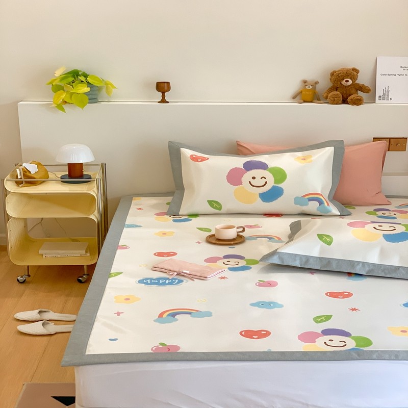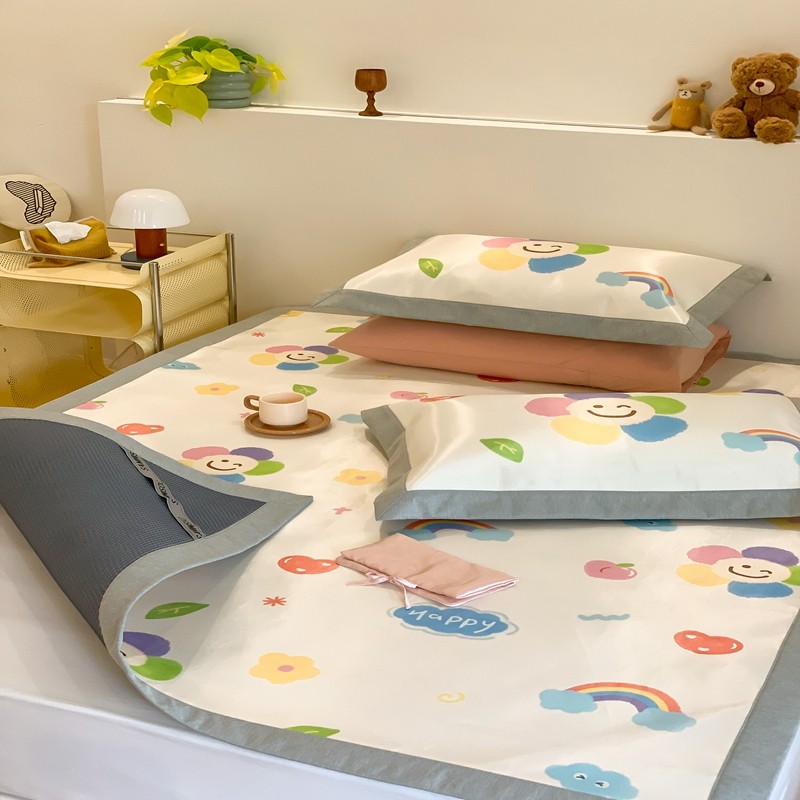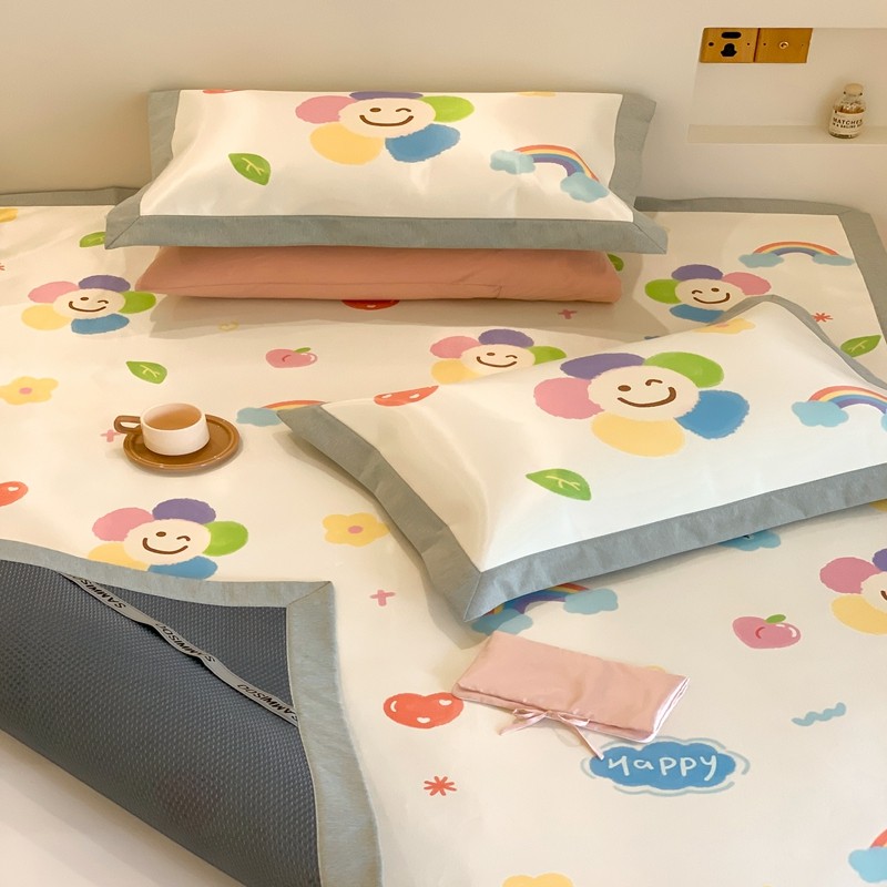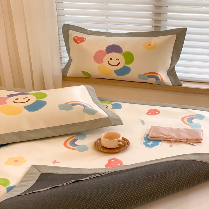 三味舒屋 2025新款抗菌数码印花冰丝席套件 微笑彩虹