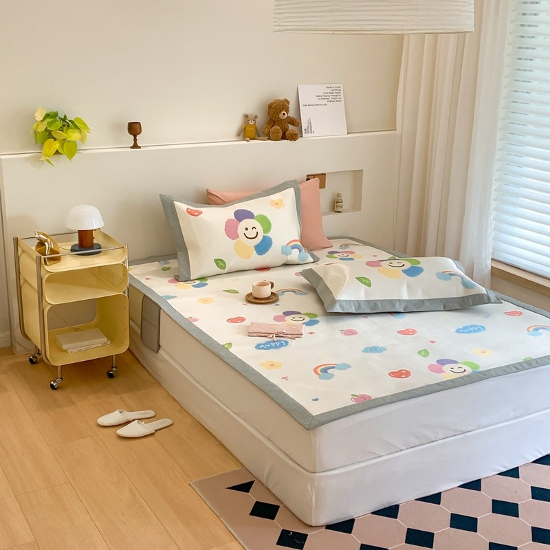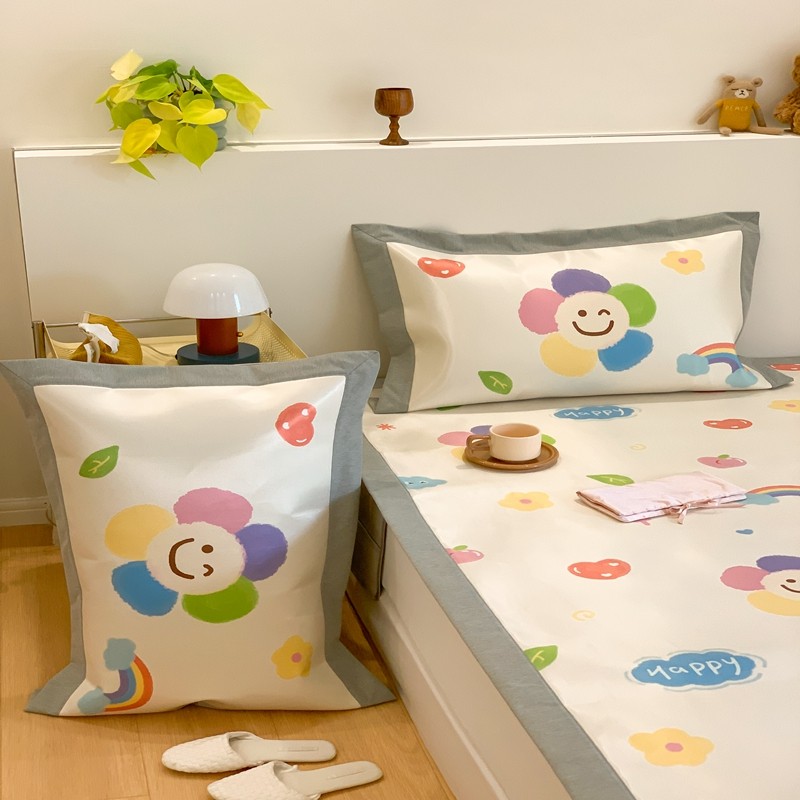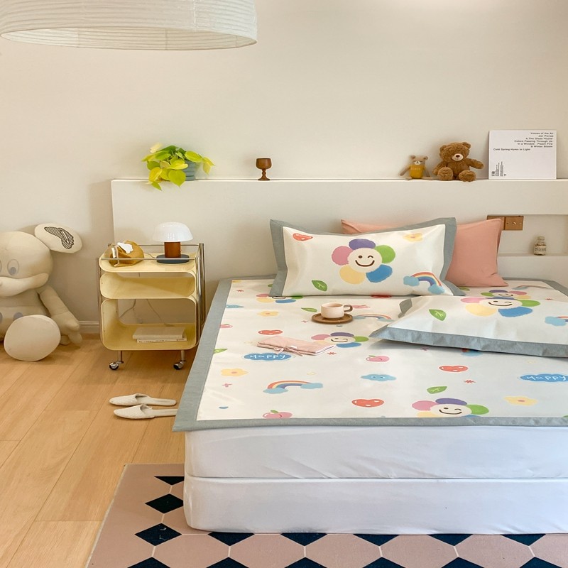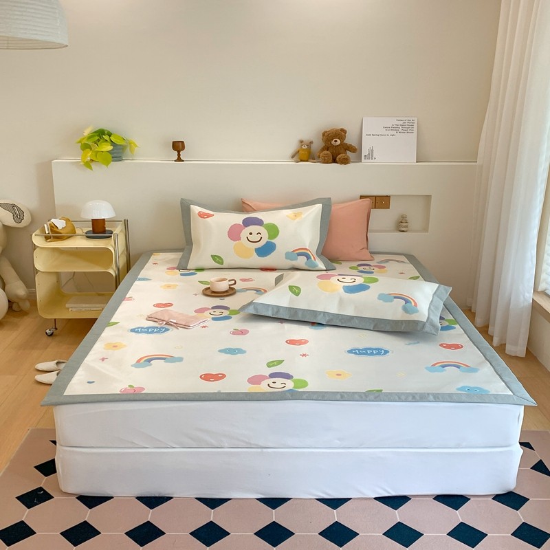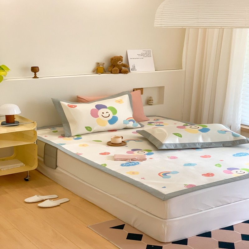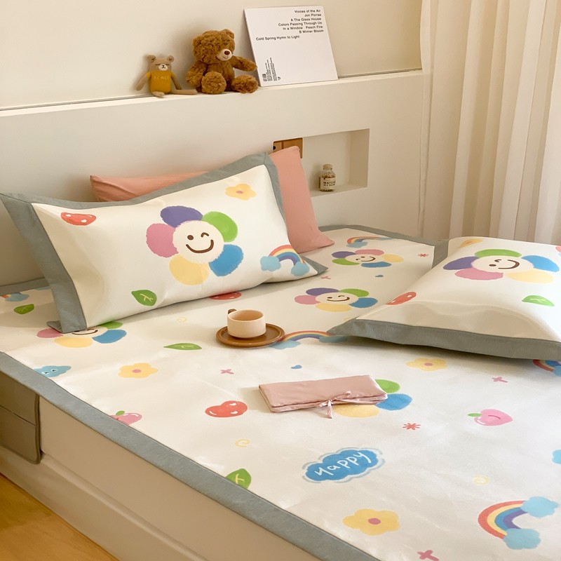 三味舒屋 2025新款抗菌数码印花冰丝席套件 微笑彩虹