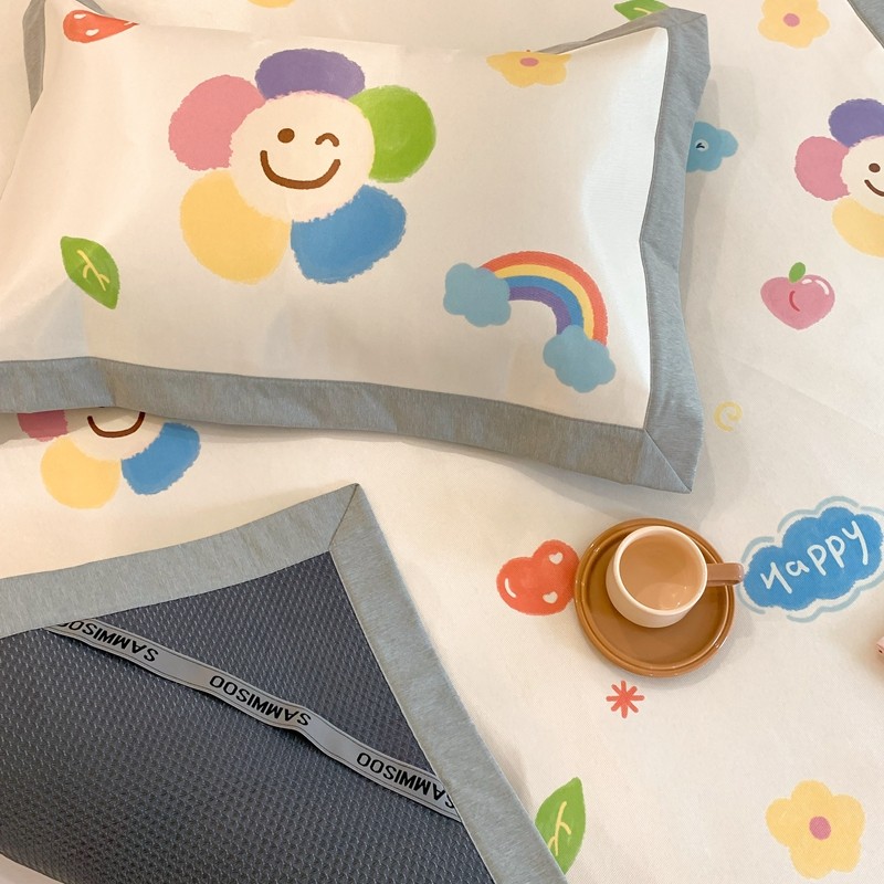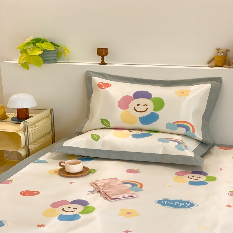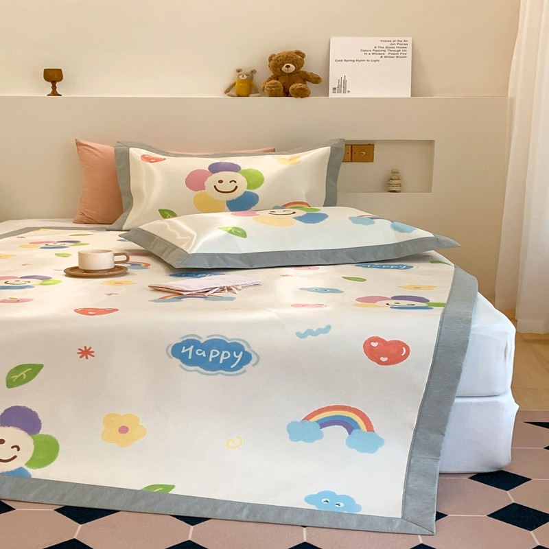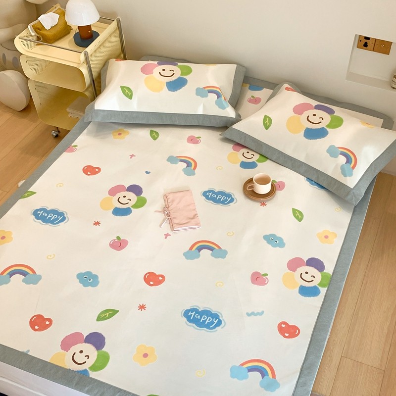 商品名称:三味舒屋 2025新款抗菌数码印花冰丝席套件 微笑彩虹