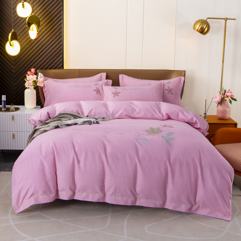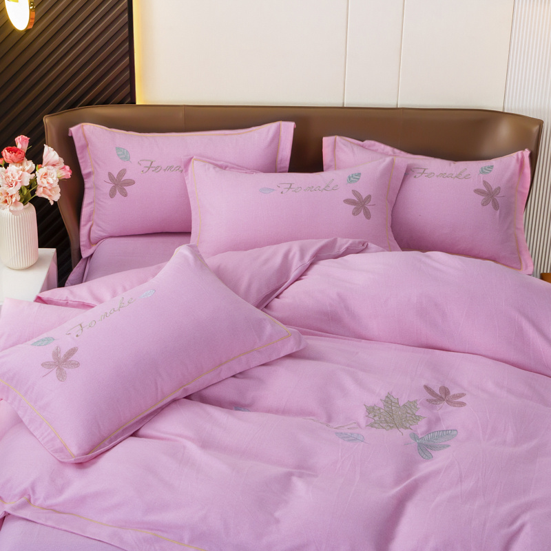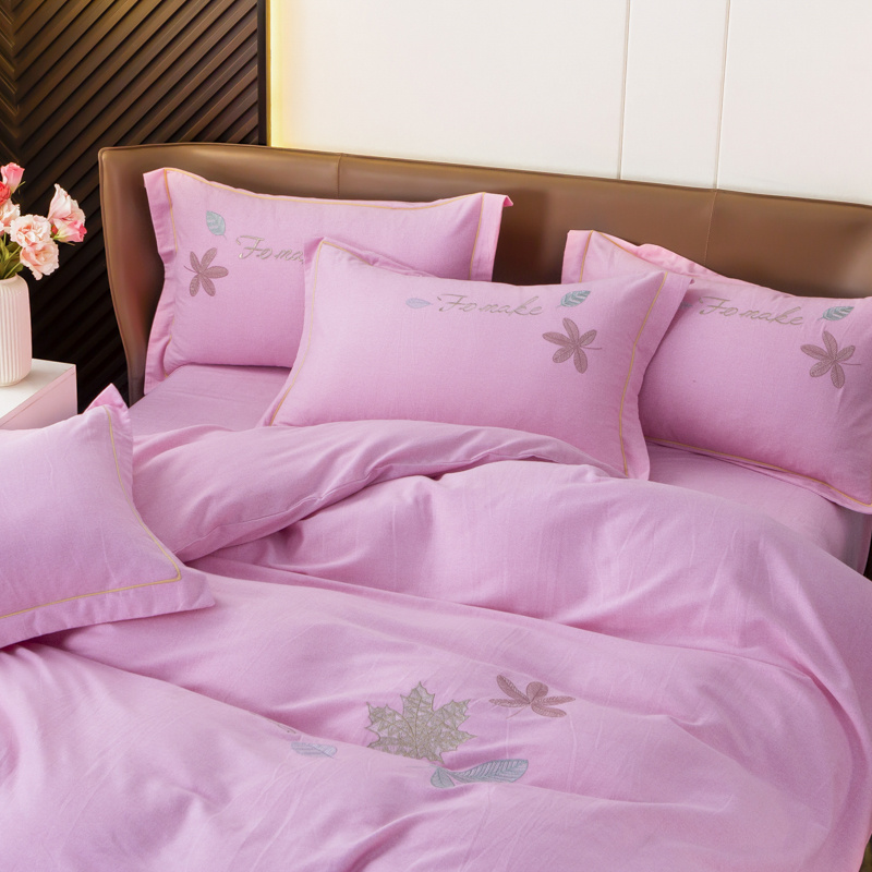 优姿家纺 2022新款全棉磨毛绣花四件套 枫叶-粉色