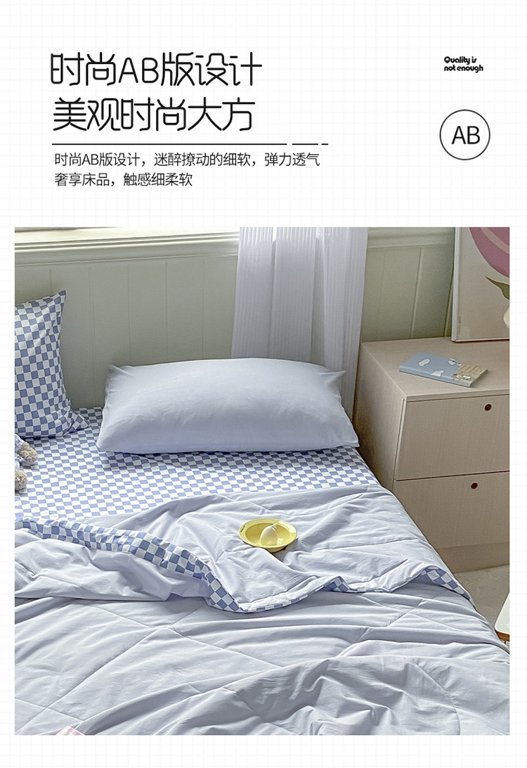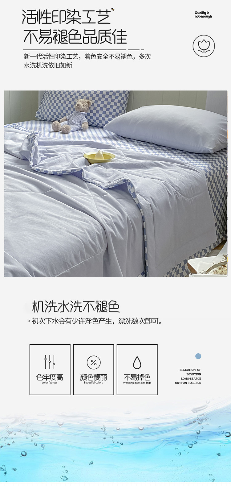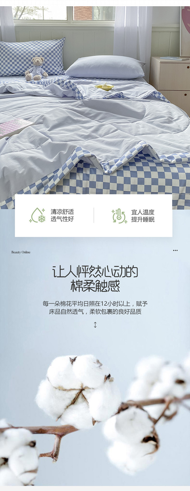 三朵 2022新款水洗棉夏被四件套 浅蓝格